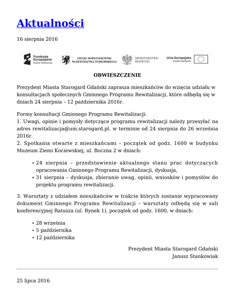 Aktualności - Starogard Gdański