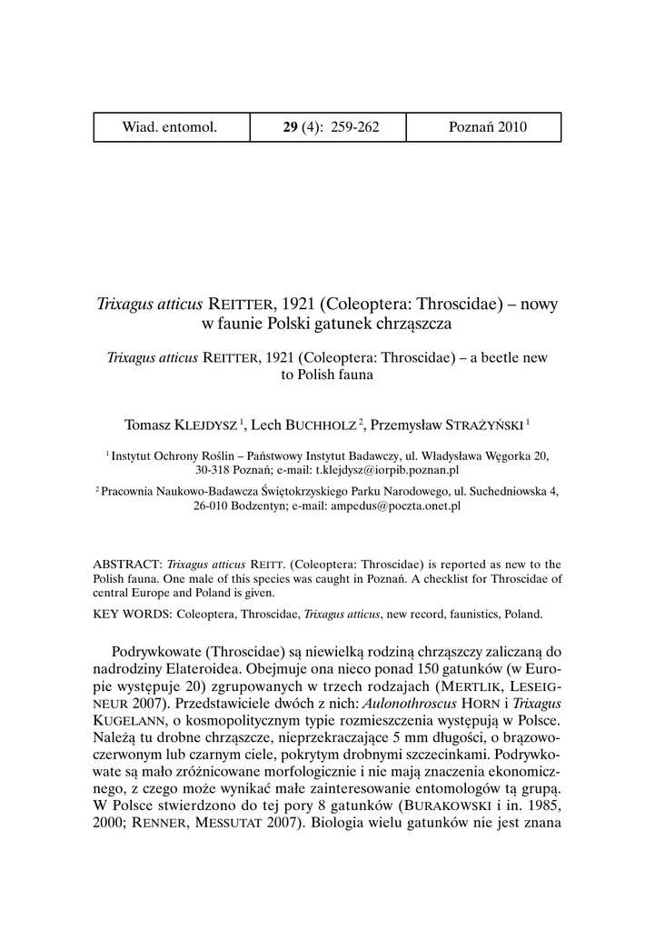 Tomasz KLEJDYSZ, Lech BUCHHOLZ, Przemysław STRAŻYŃSKI