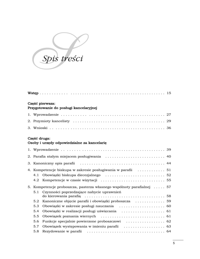 S Spis treœci Wstęp . . . . . . . . . . . . . . . . . . . . . . . . . . . . . . . . . . . . . . . . . . . . . . . . . . . . . 15 Część pierwsza: Przygotowanie do posługi kancelaryjnej 1. Wprowadzenie . . . . . . . . . . . . . . . . . . . . . . . . . . . . . . . . . . . . . . . . . . . . 27 2. Przymioty kancelisty . . . . . . . . . . . . . . . . . . . . . . . . . . . . . . . . . . . . . . . . 29 3. Wnioski . . . . . . . . . . . . . . . . . . . . . . . . . . . . . . . . . . . . . . . . . . . . . . . . . 36 Część druga: Osoby i urzędy odpowiedzialne za kancelarię 1. Wprowadzenie . . . . . . . . . . . . . . . . . . . . . . . . . . . . . . . . . . . . . . . . . . . . 39 2. Parafia stałym miejscem posługiwania 3. Kanoniczny opis parafii . . . . . . . . . . . . . . . . . . . . . . . . . . 40 . . . . . . . . . . . . . . . . . . . . . . . . . . . . . . . . . . . . . 44 4. Kompetencje biskupa w zakresie posługiwania w parafii 4.1 Obowiązki biskupa diecezjalnego 4.2 Kompetencje w czasie wizytacji . . . . . . . . . . . . 51 . . . . . . . . . . . . . . . . . . . . . . . . . . 52 . . . . . . . . . . . . . . . . . . . . . . . . . . . . 55 5. Kompetencje proboszcza, pasterza własnego wspólnoty parafialnej . . . . . 57 5.1 Czynności poprzedzające nabycie uprawnień do kierowania parafią . . . . . . . . . . . . . . . . . . . . . . . . . . . . . . . . . . . 58 5.2 Kanoniczne objęcie parafii i obowiązki proboszcza 5.3 Obowiązki w zakresie posługi nauczania 5.4 Obowiązki w realizacji posługi uświęcania 5.5 Obowiązek poznania wiernych . . . . . . . . . . . . . . . . . . . 61 . . . . . . . . . . . . . . . . . . . . . . . . . . . . 61 5.6 Funkcje specjalnie powierzone proboszczowi 5.7 Obowiązek występowania w imieniu parafii 5.8 Rezydowanie w parafii . . . . . . . . . . . . . 59 . . . . . . . . . . . . . . . . . . . . 60 . . . . . . . . . . . . . . . . . 62 . . . . . . . . . . . . . . . . . . 63 . . . . . . . . . . . . . . . . . . . . . . . . . . . . . . . . . . 64 5 Spis treści 5.9 Aplikowanie Mszy za wiernych powierzonych 5.10 Obowiązek prowadzenia ksiąg parafialnych . . . . . . . . . . . . . . . . . 66 . . . . . . . . . . . . . . . . . . 67 5.11 Korzystanie z pomocy rad parafialnych . . . . . . . . . . . . . . . . . . . . . . 69 5.12 Uprawnienia jurysdykcyjne w parafii . . . . . . . . . . . . . . . . . . . . . . . 70 5.13 Utrata urzędu proboszcza . . . . . . . . . . . . . . . . . . . . . . . . . . . . . . . . 72 5.14 Zarządzanie parafią podczas wakatu urzędu proboszcza . . . . . . . . . 74 5.15 Solidarne zarządzanie parafią . . . . . . . . . . . . . . . . . . . . . . . . . . . . . 74 6. Uprawnienia wikariusza parafialnego . . . . . . . . . . . . . . . . . . . . . . . . . . . 75 6.1 Ustanowienie i powierzenie uprawnień 6.2 Zwolnienie z urzędu wikariusza . . . . . . . . . . . . . . . . . . . . . . 75 . . . . . . . . . . . . . . . . . . . . . . . . . . . 77 7. Pomocne działania osób świeckich w parafii . . . . . . . . . . . . . . . . . . . . . . 77 8. Zakres współdziałania ministerialnego świeckich i duchownych w parafii . . . . . . . . . . . . . . . . . . . . . . . . . . . . . . . . . . . . . 79 8.1 Kapłaństwo wspólne i urzędowe . . . . . . . . . . . . . . . . . . . . . . . . . . . 80 8.2 Świeccy a głoszenie Słowa Bożego . . . . . . . . . . . . . . . . . . . . . . . . . . 82 8.3 Udział świeckich w życiu wspólnoty parafialnej 8.4 Świeccy w sprawowaniu liturgii . . . . . . . . . . . . . . . . . . . . . . . . . . . 83 8.5 Udział świeckich w apostolstwie chorych 8.6 Warunki celebracji małżeństwa i chrztu . . . . . . . . . . . . . . . . . . . . 84 . . . . . . . . . . . . . . . . . . . . . 84 8.7 Przewodniczenie obrzędom pogrzebowym 9. Wnioski . . . . . . . . . . . . . . . . . . . . . . . . . . . . . 82 . . . . . . . . . . . . . . . . . . . . 84 . . . . . . . . . . . . . . . . . . . . . . . . . . . . . . . . . . 85 Część trzecia: Przygotowanie do prowadzenia ksiąg metrykalnych 1. Wprowadzenie. . . . . . . . . . . . . . . . . . . . . . . . . . . . . . . . . . . . . . . . . . . . . . 91 2. Zasady wspólne prowadzeniu ksiąg metrykalnych . . . . . . . . . . . . . . . . . 93 2.1 Księgi jako źródło kościelnych dokumentów publicznych 2.2 Obowiązek prowadzenia ksiąg metrykalnych . . . . . . . . 93 . . . . . . . . . . . . . . . . . 94 2.3 Uprawnieni do sporządzania akt metrykalnych . . . . . . . . . . . . . . . . 95 2.4 Stosowanie właściwych formularzy . . . . . . . . . . . . . . . . . . . . . . . . . 97 2.5 Odrębność ksiąg dla jednorodnych akt metrykalnych . . . . . . . . . . . 98 2.6 Miejsce sporządzania zapisów metrykalnych . . . . . . . . . . . . . . . . . . 99 2.7 Rzetelność i sumienność w tworzeniu akt metrykalnych 2.8 Źródła dla urzędowych zapisów w księgach metrykalnych 2.9 Sprostowania urzędowe zapisów metrykalnych . . . . . . . . 100 . . . . . . 102 . . . . . . . . . . . . . . . 105 2.10 Uprawnione zmiany treści zapisów metrykalnych . . . . . . . . . . . . . 107 2.11 Alfabetyczny skorowidz akt metrykalnych . . . . . . . . . . . . . . . . . . . 109 2.12 Obowiązek wydania odpisu akt metrykalnych . . . . . . . . . . . . . . . . 109 2.13 Sporządzenie kopii ksiąg metrykalnych 6 . . . . . . . . . . . . . . . . . . . . 112 Spis treści 2.14 Uprawniony wgląd w akta metrykalne . . . . . . . . . . . . . . . . . . . . . 113 2.15 Kanoniczny nadzór nad księgami metrykalnymi . . . . . . . . . . . . . . 115 2.16 Kary za bezprawne zmiany w aktach metrykalnych . . . . . . . . . . . 116 3. Wnioski . . . . . . . . . . . . . . . . . . . . . . . . . . . . . . . . . . . . . . . . . . . . . . . . 116 Część czwarta: Prowadzenie ksiąg metrykalnych 1 Księga ochrzczonych . . . . . . . . . . . . . . . . . . . . . . . . . . . . . . . . . . . . . . . 121 1.1 Prowadzenie księgi . . . . . . . . . . . . . . . . . . . . . . . . . . . . . . . . . . . . 122 1.2 Rejestracja okoliczności dodatkowych 1.3 Księga uzupełniająca 1.4 Księg