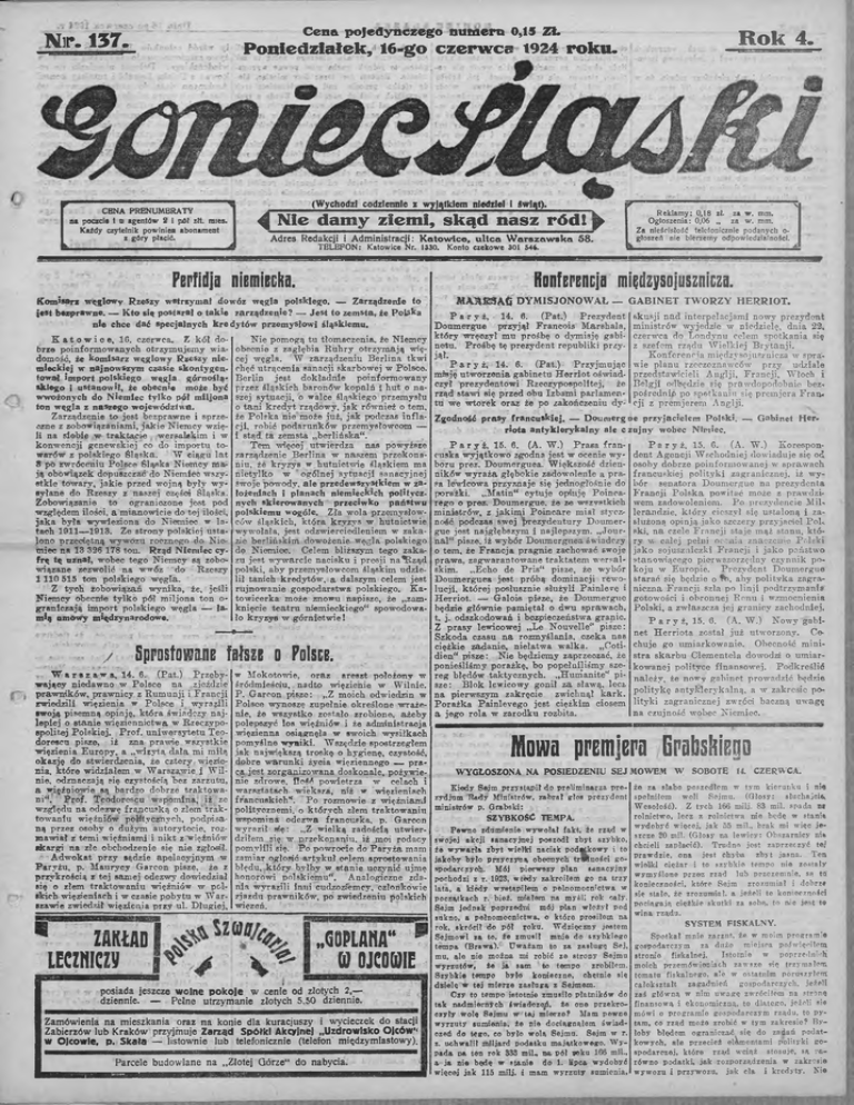 Adres Redakcji i Administracji: Katowice, ulica W arszawska 58.