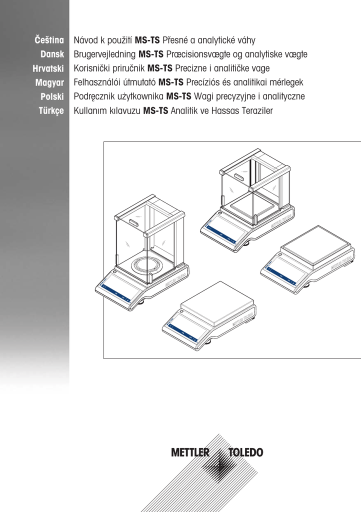 Čeština Dansk Hrvatski Magyar Polski Türkçe Návod k použití MS-TS Přesné a analytické váhy Brugervejledning MS-TS Præcisionsvægte og analytiske vægte Korisnički priručnik MS-TS Precizne i analitičke vage Felhasználói útmutató MS-TS Precíziós és analitikai mérlegek Podręcznik użytkownika MS-TS Wagi precyzyjne i analityczne Kullanım kılavuzu MS-TS Analitik ve Hassas Teraziler MS MS MS MS Návod k použití MS-TS Čeština Brugervejledning MS-TS Dansk Korisnički priručnik MS-TS Hrvatski Felhasználói útmutató MS-TS Magyar Podręcznik użytkownika MS-TS Polski Kullanım kılavuzu MS-TS Türkçe cs 1 Bezpečnostní informace 1.1 Definice varovných signálů a symbolů Bezpečnostní poznámky jsou označeny signálními slovy a varovnými symboly. Poznámky ukazují na bezpečnostní problémy a varování. Nerespektování bezpečnostních poznámek může vést ke zranění osob, poškození přístroje, nesprávné funkci a chybným výsledkům. VAROVÁNÍ Označuje nebezpečnou situaci se středním rizikem – pokud se jí nevyhnete, může to vést k vážným zraněním. UPOZORNĚNÍ Označuje nebezpečnou situaci s nízkým rizikem – pokud se jí nevyhnete, může to vést k poškození zařízení nebo majetku, ke ztrátě dat nebo k lehkým až středně těžkým zraněním. Pozor (žádný symbol) Označuje důležité informace o produktu. Poznámka (žádný symbol) Označuje užitečné informace o produktu. Obecné nebezpečí Úraz elektrickým proudem 1.2 Bezpečnostní informace o výrobku Určené použití Váha slouží k vážení. Používejte ji jen k tomuto účelu. Jakýkoli jiný druh použití nebo provozu mimo limity technických specifikací bez písemného souhlasu společnosti Mettler-Toledo GmbH je považován za odporující zamýšlenému použití. Váha se nesmí používat ve výbušném prostředí obsahujícím plyny, páru, mlhu, prach nebo hořlavý prach (nebezpečná prostředí). Obecné bezpečnostní informace Tato váha vyhovuje aktuálním průmyslovým normám a uznávaným bezpečnostním předpisům; avšak při používání může představovat nebezpečí. Neotevírejte kryt váhy: Váha neobsahuje žádné díly opravitelné uživatelem. V případě problémů se obraťte na zástupce společnosti METTLER TOLEDO. Přístroj vždy používejte pouze tak, jak je uvedeno v pokynech obsažených v tomto návodu. Bezpodmínečně dodržujte pokyny pro uvedení svého nového přístroje do provozu. Pokud by přístroj nebyl používán podle tohoto návodu k obsluze, mohlo by dojít k jeho poškození a společnost METTLER TOLEDO neponese žádnou odpovědnost. Bezpečnost personálu Před použitím váhy je nutné si přečíst tento návod k obsluze a porozumět mu. Tento návod k obsluze je nutné si uchovat k pozdějšímu nahlédnutí. Váha nesmí být nijak měněna nebo upravována. Používejte pouze originální náhradní díly a příslušenství METTLER TOLEDO. MS-TS Bezpečnostní informace 3 Bezpečnostní pokyny UPOZORNĚNÍ Poškození váhy 1 Používejte pouze uvnitř na suchých místech. 2 K ovládání dotykové obrazovky nepoužívejte špičaté nebo ostré předměty! Váha má velmi robustní konstrukci, stále se však jedná o přesný přístroj. Je nutné s ní manipulovat opatrně. 3 Váhu neotevírejte: Váha neobsahuje žádné díly opravitelné uživatelem. V případě problémů se obraťte na zástupce společnosti METTLER TOLEDO. 4 Používejte pouze originální příslušenství a periferní zařízení pro váhu od společnosti METTLER TOLEDO. Jsou specificky určená pro tuto váhu. VAROVÁNÍ Riziko úrazu elektrickým proudem Používejte výhradně originální síťový adaptér dodaný společně s váhou a ujistěte se, že se hodnota napětí, která je na něm uvedena, shoduje s napětím místní elektrické sítě. Adaptér zapojujte pouze do uzemněné elektrické zásuvky. 4 Bezpečnostní informace MS-TS cs 2 Konstrukce a funkce 2.1 Přehled 0.1 g 10 mg 5 5 6 7 7 9 9 C MS MS 2 1 1 10 2 14 10 3 3 5 5 7 7 MS 6 MS 4 1 2 10 1 MS-TS 12 13 8 14 10 4 14 1 Kapacitní barevný dotykový TFT displej 2 Ovládací tlačítka 3 Skleněný kryt proti proudění vzduchu 4 Držadlo k manipulaci s dvířky krytu proti proudění vzduchu 5 Vážicí miska 6 Vložka krytu proti proudění vzduchu 7 Vodováha 8 Oko Kensington pro bezpečnostní zámek 9 Bezpečnostní nožky (modely 10 mg a 0,1 g) 10 Stavitelná nožka 11 Připojení zařízení prostřednictvím USB 12 Sériové rozhraní RS232 13 Zásuvka pro síťový adaptér 14 USB připojení k hostitelskému zařízení 15 Typový štítek 15 11 2 Konstrukce a funkce 5 2.2 Ovládací tlačítka 2 1 Č. Tlačítko 1 3 4 5 Název Vysvětlení Zapnuto/vypnuto Pro zapnutí nebo vypnutí přístroje. 2 Kapacitní barevný dotykový TFT displej Obecná navigace 3 Tára Pro tárování váhy. 4 Vynulovat Pro vynulování váhy. 5 Domů Pro návrat z jakékoli úrovně menu nebo z jiného okna na domovskou obrazovku aplikace. 2.3 Uživatelské rozhraní Přístroj je vybaven kapacitním barevným dotykovým TFT displejem. Dotykový displej zobrazuje informace a zároveň umožňuje zadávat příkazy klepnutím na určitá místa na jeho povrchu. Můžete vybírat informace zobrazené na obrazovce, měnit nastavení váhy nebo provádět určité operace na přístroji. Na displeji se objeví pouze prvky, které jsou dostupné pro aktuální dialog. UPOZORNĚNÍ Nedotýkejte se dotykové obrazovky špičatými nebo ostrými předměty! Dotyková obrazovka by se mohla poškodit. 6 Konstrukce a funkce MS-TS 2.3.1 Domovská obrazovka aplikace cs Domovská obrazovka aplikace se zobrazí po spuštění přístroje. Ve všech případech se zobrazí poslední aplikace používaná před vypnutím váhy. Domovská obrazovka aplikace je hlavní obrazovkou váhy pro přístup k všem funkcím. Na domovskou obrazovku aplikace se