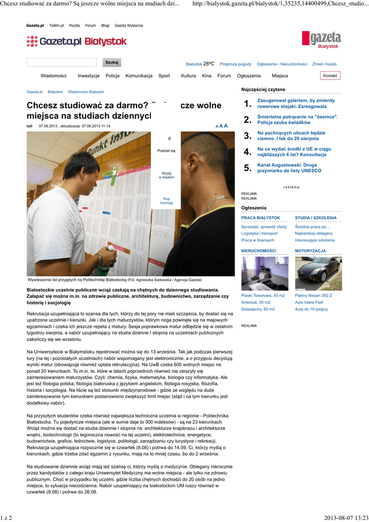 Gazeta.bialystok.pl Chcesz studiować za darmo? Są jeszcze wolne