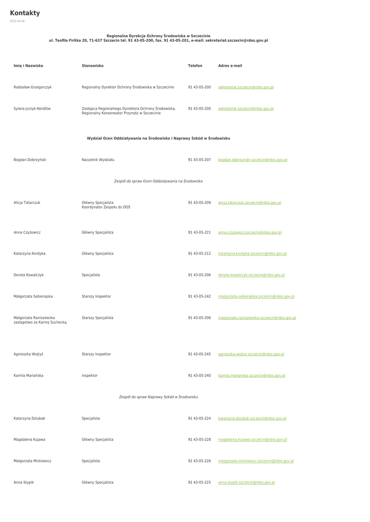 Kontakty - Regionalna Dyrekcja Ochrony Środowiska w Szczecinie