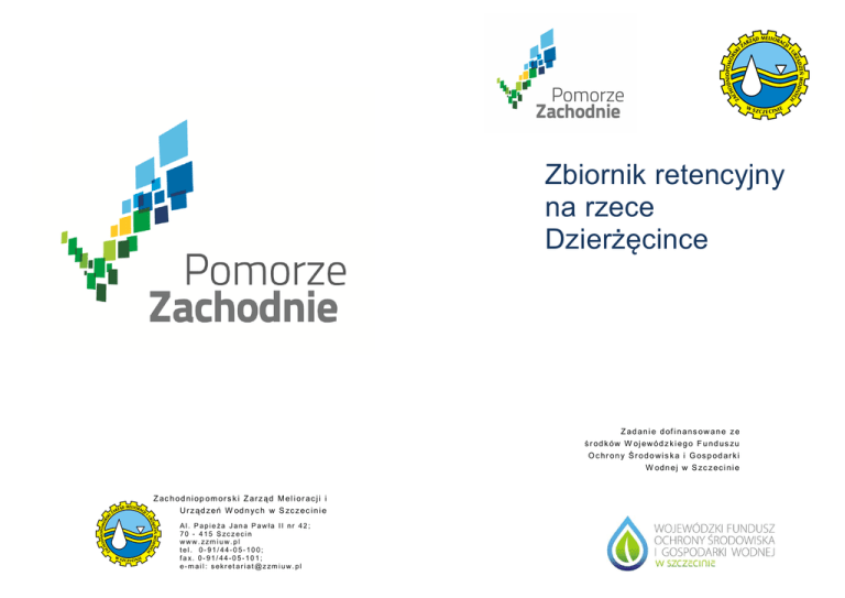 Zbiornik retencyjny na rzece Dzierżęcince Z a d a n i e d of i n a n s o w a n e z e ś r od k ó w W o j e w ó d z k i e g o F u n d u s z u Ochr ony Śr odowis ka i G ospodar ki W od n e j w S z c z e c i n i e Z ac h o d n i o p o m o r s k i Z a r z ą d M e l i o r a c j i i U r z ą d z e ń W od n y c h w S z c z e c i n i e Al . P api e ża Jan a P aw ła II nr 42 ; 70 - 415 S zczeci n www. zzm i uw. pl tel. 0- 91/44-05-100; fa x. 0- 91/ 44-0 5-10 1; e-m ai l : sekret ari at @zzm i uw. pl W publikacji, którą przekazujemy Państwu, prezentujemy inwestycję realizowaną przez Zachodniopomorski Zarząd Melioracji i Urządzeń Wodnych w Szczecinie dofinansowaną ze środków Wojewódzkiego Funduszu Ochrony Środowiska i Gospodarki Wodnej w Szczecinie, będącą elementem przedsięwzięcia inwestycyjnego pn. „Zabezpieczenie przeciwpowodziowe zlewni jeziora Jamno wraz z rewitalizacją rzeki Dzierżęcinki – zabezpieczenie terenów zabudowanych m. Koszalin”. To zaledwie w znacznym województwa. mała część projektów, dzięki którym stopniu wzrośnie atrakcyjność naszego Finansowe wsparcie kierowane jest w najbardziej potrzebujące rejony województwa, w znacznym stopniu zagrożone podtopieniem. Realizowane inwestycje przyczynią się do poprawy warunków życia mieszkańców, jak i inwestowania. To także szansa dla nowych pokoleń. Realizowane projekty zapewniają nam bezpieczeństwo przeciwpowodziowe, dbają o dziedzictwo kulturowe i środowisko naturalne. Dzięki temu stajemy się bezpieczniejszym i bardziej nowoczesnym krajem. Wystarczy rozejrzeć się wokół. Tomasz Płowens Dyrektor Zachodniopomorskiego Zarządu Melioracji i Urządzeń Wodnych w Szczecinie W najbliższych latach Zachodniopomorski Zarząd Melioracji i Urządzeń Wodnych w Szczecinie zamierza realizować ze środków unijnych i budżetu państwa w montażu finansowym nw. zadania: – Śluza – budowa kanału łączącego Jezioro Jamno z Morzem Bałtyckim, – Zabezpieczenie przeciwpowodziowe zlewni jeziora Jamno - przywrócenie parametrów technicznych wałów przeciwpowodziowych na południowym brzegu jeziora Jamno, – Zabezpieczenie przeciwpowodziowe jeziora Jamno - wykonanie ostrogi na południowym brzegu jeziora Jamno w celu zabezpieczenia brzegu jeziora przed falowaniem, – Zabezpieczenie przeciwpowodziowe zlewni jeziora Jamno wraz z rewitalizacją rzeki Dzierżęcinki – zabezpieczenie terenów zabudowanych m. Koszalin Przepławka przy ulicy Młyńskiej. Zachodniopomorski Zarząd Melioracji i Urządzeń Wodnych w Szczecinie jest samorządową jednostką budżetową, która realizuje w imieniu Marszałka Województwa Zachodniopomorskiego zadania związane z szeroko rozumianą gospodarką wodną, w tym również zadania z zakresu ochrony przeciwpowodziowej, jako zadanie zlecone z zakresu administracji rządowej. Jednym z wielu zadań realizowanych tym zakresie jest zadanie pn.: „Zabezpieczenie przeciwpowodziowe zlewni jeziora Jamno wraz z rewitalizacją rzeki Dzierżęcinki – zabezpieczenie terenów zabudowanych m. Koszalin”. Podstawową przesłanką do zrealizowania ww. projektu jest potrzeba wzmocnienia ochrony przedmiotowego obszaru, ludności tam mieszkającej i prowadzącej działalność gospodarczą i rolniczą a także obiektów użyteczności publicznej przed niszczącym działaniem wezbranych wód rzeki Dzierżęcinki, jeziora Jamno oraz wód morskich wpływających do jeziora Jamno w okresie niekorzystnych wiatrów wywołujących „cofkę”. Istniejące urządzenia ochrony przeciwpowodziowej zabezpieczające ww. tereny, ze względu na swój stan techniczny oraz ograniczony obszar oddziaływania, obecnie nie spełniają właściwie swojej roli. Celem głównym przedsięwzięcia jest zwiększenie stopnia bezpieczeństwa powodziowego mieszkańców Koszalina oraz miejscowości i terenów przyległych do jeziora Jamno poprzez zabezpieczenie brzegu jeziora Jamno, remont koryta rzeki Dzierżęcinki, budowę zbiornika retencyjnego, wykonanie stopnia wodnego na wypływie z jeziora Lubiatowo oraz budowę wrót sztormowych na Kanale Jamneńskim. Przewidywane korzyści z realizacji przedsięwzięcia: 1. Ochrona przed powodziami, 2. Uniknięcie strat powodziowych, 3. Uniknięcie utraty życia i zdrowia ludzkiego, 4. Lepsze możliwości ochrony przyrody, 5. Zmniejszenie procesów erozyjnych, Szczegółowe cele projektu to: 1. Ochrona przeciwpowodziowa zlewni jeziora Jamno, ze szczególnym uwzględnieniem miasta Koszalina, 2. Zmniejszenie zakresu wylewów wód wezbraniowych napływających rzeką Dzierżęcinką oraz wód morskich wywołanych niekorzystnym kierunkiem wiatrów i „cofką” powodującą piętrzenie wód w obszarze jeziora Jamno i terenów przyległych, 3. Poprawienie warunków produkcji rolniczej, prowadzenia działalności gospodarczej i atrakcyjności turystycznej w obszarze jeziora Jamno i na terenach przyległych poprzez ograniczenie zalewania z tego obszaru, 4. Ochrona środowiska przyrodniczego obszarów objętych projektem, będąca wynikiem następujących działań: • • • udrożnienie starorzecza, umożliwienie migracji ryb (przepławki), powstrzymywanie erozji brzegowej zabudowy biologicznej, przy zastosowaniu 6. Redukcja szkodliwego oddziaływania związków organicznych i biogennych. „Zabezpieczenie przeciwpowodziowe zlewni jeziora Jamno wraz z rewitalizacją rzeki Dzierżęcinki – zabezpieczenie terenów zabudowanych miasta Koszalin” Projekt pn. polega na poprawieniu parametrów cieków wodnych oraz budowie lub odtworzeniu budowli hydrotechnicznych w celu kompleksowego rozwiązania problemu ochrony przeciwpowodziowej. Poniżej przedstawiono zestawienie prac objętych przedsięwzięciem (zawartych w poszczególnych etapach): – Etap I: Zabezpieczenie północno-zachodniego brzegu jeziora Jamno przed zalaniem terenów zabudowanych miejscowości Mielno i Unieście - budowa umocnień brzegowych wzdłuż północno-zachodniego brzegu jeziora Jamno 