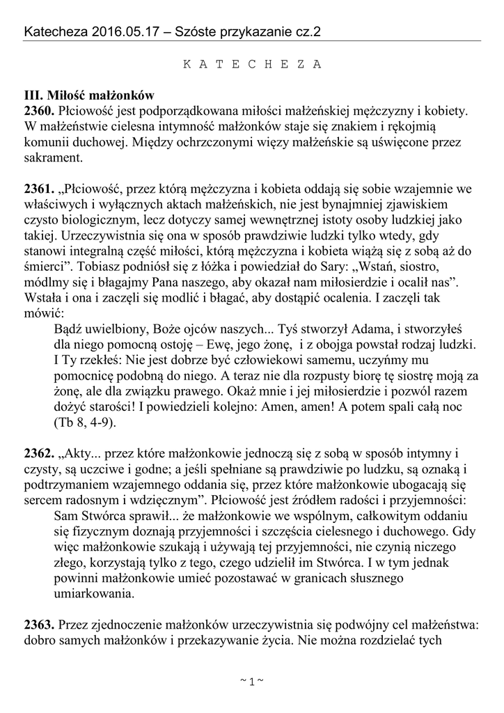 Katecheza 2016.05.17 – Szóste przykazanie cz.2 KATECHEZA III
