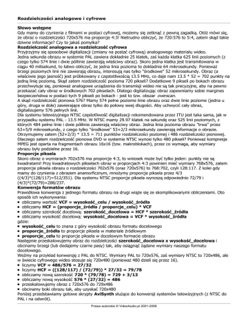 ((4/3)*(128/117)=512/351). Dla systemu NTSC proporcje piksela wynoszą odpowiednio 72/79 i