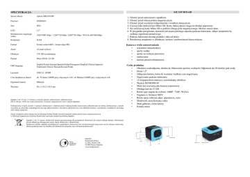 SJCAM M10 wifi SPECYFIKACJA Sensor obrazu Aptina AR0330 DSP Procesor NTK96655 Sieć WiFi LCD 1.5" Rozdzielczość nagranego wideo 1920*1080 30fps / 1280*720 60fps /1280*720 30fps / WVGA 640*480 60fps Kompresja H.264 Format Format wideo:MOV / format zdjęć:JPG Zoom x4 zoom cyfrowy Obiektyw 170° HD szerokokątny Pamięć Micro SD do 32 GB OSD language English/French/German/Spanish/Italian/Portuguese/Simplied Chinese/Japanese/ Traditional Chinese/ Russian/Korean/Polski Łączność USB 2.0 , HDMI Czas działania na baterii ok. 70 minut (1080P) przy włączonym wifi / ok.90minut (1080P) przy wyłączonym wifi Pojemność baterii 900mAh Wymiary 48,1 x 43,3 x 43,4 mm 1. Chronić przed uderzeniem i upadkiem. 2. Chronić przed silnym polem magnetycznym. 3. Chronić przed wysokimi temperaturami i światłem słonecznym. 4. Używaj tylko dobrych kart Mikro SD. Karty słabej jakości mogą nie działać poprawnie. 5. Nie umieszczaj karty Mikro SD w pobliżu silnego pola magnetycznego. Możesz stracić dane. 6. W przypadku przegrzania, dymienia lub nieprzyjemnego zapachu podczas ładowania, odłącz urządzenie by uniknąć zagrożenia pożarowego. 7. Podczas ładowania trzymaj produkt z dala od dzieci. 8. Przechowuj urządzenie w chłodnym, suchym i pozbawionym kurzu miejscu. Kamera o wielu zastosowaniach: • rejestrator samochodowy • sporty wodne • sporty na wolnym powietrzu • nurkowanie • kamera przeciwwłamaniowa Zgodnie z Art. 22 ust.1 i 2 Ustawy o zużytym sprzęcie elektrycznym i elektronicznym (Dz.U.180 poz. 1495), nie wolno umieszczać, wyrzucać, magazynować wraz z innymi odpadami. Niebezpieczne związki zawarte w sprzęcie elektrycznym i elektronicznym wykazują bardzo niekorzystne oddziaływanie na rośliny, drobnoustroje, a przede wszystkim na człowieka, uszkadzają bowiem jego układ centralny i obwodowy układ nerwowy oraz układ krwionośny i wewnętrzny, a dodatkowo powodują silne reakcje alergiczne. Zużyte urządzenie należy dostarczyć do lokalnego Punktu Zbiórki zużytych urządzeń elektrycznych, który zarejestrowany jest w Głównym Inspektoracie Ochrony Środowiska i prowadzi selektywną zbiórkę odpadów. Zgodnie z Art. 35 ustawy, użytkownik sprzętu przeznaczonego dla gospodarstw domowych, po zużyciu takiego sprzętu, zobowiązany jest do oddania go zbierającemu zużyty sprzęt elektryczny i elektroniczny. Selektywna zbiórka odpadów pochodzących z gospodarstw domowych oraz ich przetwarzanie przyczynia się do ochrony środowiska, obniża przedostawanie się szkodliwych substancji do atmosfery oraz wód powierzchniowych. Importer: Kompranet.pl Sp.J. ul. Jana z Kolna 1/S6 83-000 Pruszcz Gdański www.kompranet.pl Cechy produktu: • Obudowa wodoodporna, idealna do filmowania sportów wodnych; Odporność do 30 metrów pod wodą • Ekran 1,5” • Odłączana bateria, łatwa do wymiany wydłuża czas nagrywania. • Nagrywanie podczas ładowania • 12 megapixelowa matryca i szerokokątny obiektyw • Wyjście HD/HDMI/AV • Może być używana jako kamera internetowa • Obsługa kart do 32 GB • Różne typy nagrań do wyboru: 1080P / 720P / WVGA • Nagrania w formacie MOV • Różne opcje robienia zdjęć: pojedyncze, seria • Możliwość zaszyfrowania video • Małe gabaryty, różne kolory • Polskie menu Obudowa wodoodporna Instrukcja obsługi: 1. Wkładanie karty pamięci: Używaj tylko dobrych, firmowych kart Mikro SD. Karty słabej jakości mogą nie działać poprawnie. Sformatuj kartę Mikro SD przed włożeniem do urządzenia. 2.Wkładanie i wyjmowanie baterii: • naciśnij na klapkę baterii żeby ją otworzyć • włóż baterię zwracając uwagę na oznaczenia + i • wyjmowanie baterii: otwórz klapkę baterii i wyjmij ją 3.Ładowanie: • podłącz urządzenie do ładowarki, ładowarki samochodowej lub komputera • kamera M10 może nagrywać wideo podczas ładowania • możesz ładować kamerę M10 nawet, gdy jest wyłączona 4.Włączanie i wyłączanie urządzenia • naciśnij i przytrzymaj przycisk power przez 3 do 5 sekund • włącz lub wyłącz urządzenie przez włączanie/wyłączanie ekranu 5. Wybór trybu pracy • przełączaj pomiędzy nagrywaniem wideo / robieniem zdjęć / odtwarzaniem / menu przez naciskanie przycisku power Akcesoria 6. Jak nagrywać wideo i skonfigurować opcje nagrywania? • Nagrywanie: przełącz na tryb nagrywania. Po lewej stronie pojawi się ikona przedstawiająca kamerę. Naciśnij OK aby rozpocząć lub przerwać nagrywanie. • Robienie zdjęć: przełącz na tryb robienia zdjęć. Po lewej stronie pojawi się ikona aparatu. Naciśnij OK aby zrobić zdjęcie. • Przechowywanie plików i odtwarzanie: Gdy skończysz pracę z kamerą, użyj kabla USB do przesłania plików do komputera . Możesz także wyjąć kartę SD i użyć czytnika kart. 7. Połączenie WI-FI • Kamera może połączyć się z telefonem z systemem android lub IOS przez sieć Wi-FI • Zainstaluj na urządzeniu mobilnym aplikację SJCAM HD • Możesz ją pobrać wyszukując: SJCAM HD w AppStore lub SJCAM HD w Google Play • Włącz kamerę, naciśnij przycisk WI-FI • Włącz WI-FI na urządzeniu mobilnym, wyszukaj sieć: M10WIFI. Standardowe hasło to „12345678” • Na ekranie M10 wyświetli się napis „WI-FI Connection Ready” • Obraz z kamery będzie transmitowany do urządzenia mobilnego • Zmiana hasła WI-FI: Wejdź w ustawienia WI-FI i zmień hasło Akcesoria Dodatkowe