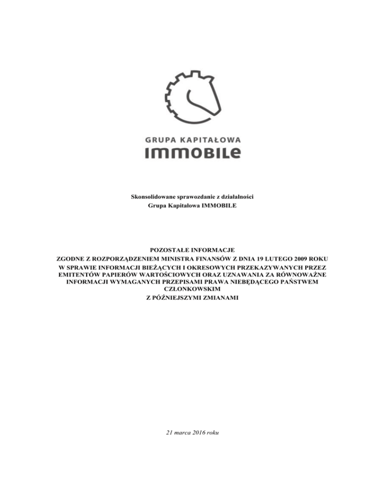 Kapitałowej IMMOBILE w roku obrotowym lub których wpływ jest możliwy w następnych