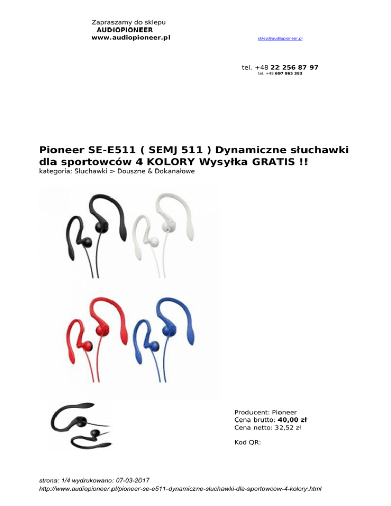 Pioneer SE-E511 ( SEMJ 511 ) Dynamiczne słuchawki dla