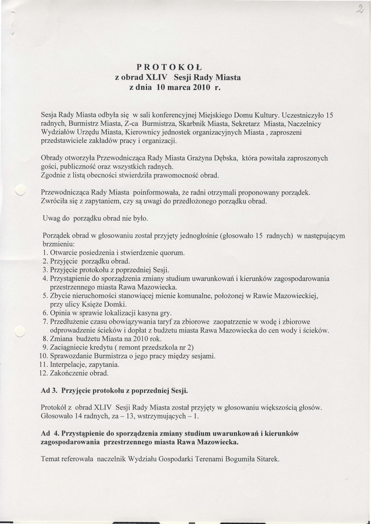 Protokół z obtad XLIV Sesji Rady Miasta został.przyjęty w głosowaniuwiększościągłosów.