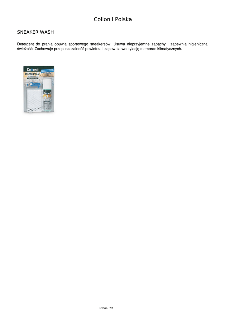 Collonil Polska SNEAKER WASH Detergent do prania obuwia sportowego sneakersów. Usuwa nieprzyjemne zapachy i zapewnia higieniczną świeżość. Zachowuje przepuszczalność powietrza i zapewnia wentylację membran klimatycznych. strona 1/1 Powered by TCPDF (www.tcpdf.org)