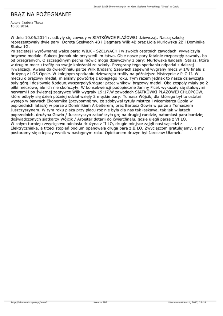 brąz na po egnanie - Zespół Szkół Ekonomicznych w Opolu