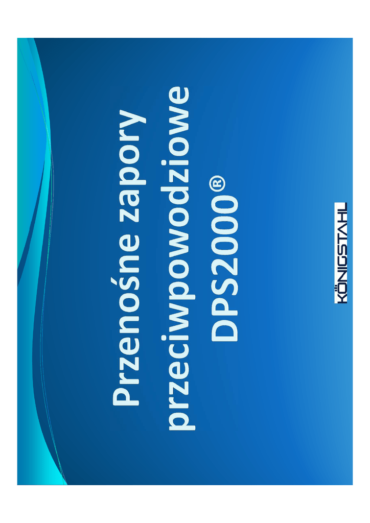 A: Systemy o prostych przekrojach nie chronią przed ryzykiem powstawania nieszczelności lub pęknięć przy uderzeniu lub obciążeniach mechanicznych. B: Opatentowane zazębienie belek DPS 2000® zapewnia wysoką stabilność systemu i maksymalne zabezpieczenie przed rozszczelnieniem . Nabrzeże Wisły - Kraków 2000r. Nabrzeże Wisły - Kraków 2000r. Zdjęcia z podtopień 2010r. Metro w Pradze, Czechy Odnoga Odry – Nowa Sól 2007r. Garaż biurowca ul. Wyczółki, W-wa 2009 Parking na Grobli Kraków 2009 Centrum Nauki Kopernik, W-wa 2010 r. Droga miejska, Krosno 2010 r. Apartamenty Ludwinów, Kraków 2010 r. Ul. Kniaziewicza, Piaseczno 2011 r. Grein, Austria 2013 r. Muzeum Historii Żydów Polskich Warszawa 2013 r. Dobrzeń Wielki / Borki 2014 r. Uniejów 2014 r. Wrocław 2015 r. (w budowie) • Łatwość ustawiania zapory/zapór • Lekkość elementów (podczas powodzi belki napełniają się wodą) • Wielokrotnie sprawdzony w Niemczech, Austrii, Czechach, Anglii, Holandii, USA, a ostatnio coraz częściej w Polsce • Amortyzuje się już przy pierwszym użyciu! • Wyrób posiada Aprobatę Techniczną ITP Kontakt z nami: ul. Postępu 2 wejście od ul. Bokserskiej 02-676 Warszawa www.KoenigStahl.pl www. Jansen.pl Email: [email protected] Tel: +48 22 5496 108 Fax: +48 22 5496 123 mgr inż. Juliusz Malinowski Doradca Techniczno-Handlowy Tel. +48 22 54 96 108 Fax. +48 22 54 96 123 [email protected]