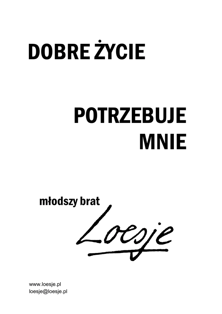 DOBRE ŻYCIE POTRZEBUJE MNIE młodszy brat www.loesje.pl [email protected]