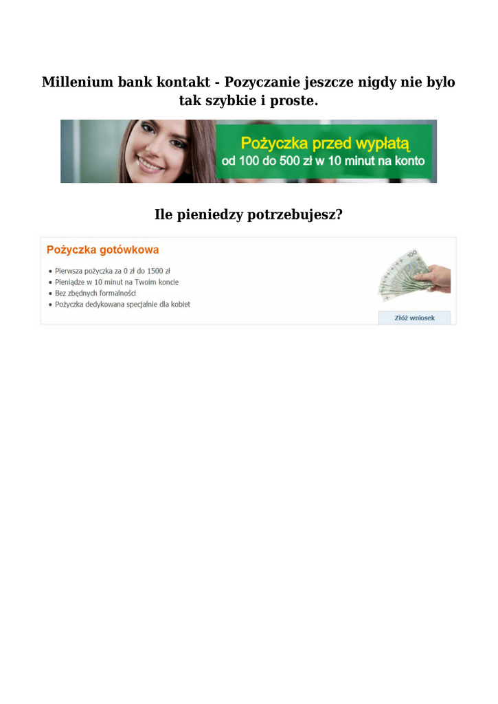 Millenium bank kontakt - Pozyczanie jeszcze nigdy nie bylo tak