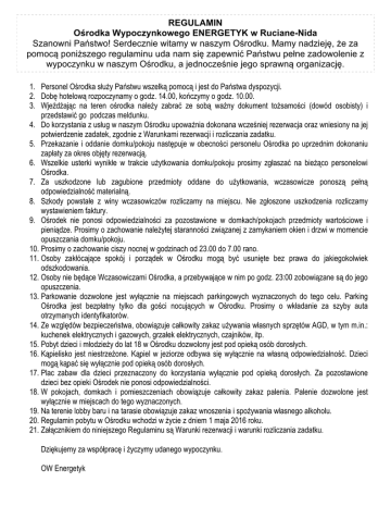 REGULAMIN Ośrodka Wypoczynkowego ENERGETYK w Ruciane