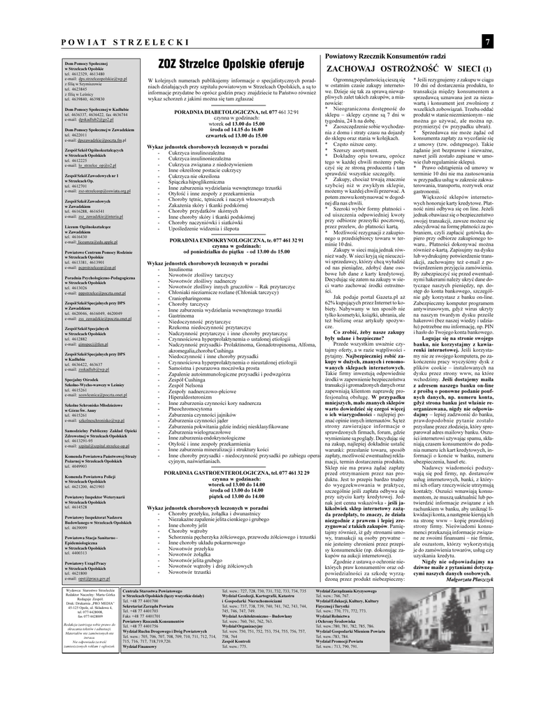 P O W I A T 7 S T R Z E L E C K I Powiatowy Rzecznik Konsumentów radzi ZOZ Strzelce Opolskie oferuje Dom Pomocy Spo³ecznej w Strzelcach Opolskie ZACHOWAJ OSTRO¯NOÆ W tel. 4612329, 4613480 e-mail: [email protected] z fili¹ w Szymiszowie W kolejnych numerach publikujemy informacje o specjalistycznych porad- niach dzia³aj¹cych przy szpitalu powiatowym w Strzelcach Opolskich, a s¹ to tel. 4623845 informacje przydatne bo oprócz godzin pracy znajdziecie tu Pañstwo równie¿ z fili¹ w Lenicy wykaz schorzeñ z jakimi mo¿na siê tam zg³aszaæ tel. 4639840, 4639830 Dom Pomocy Spo³ecznej w Kad³ubie roda od 14.15 do 16.00 Wykaz jednostek chorobowych leczonych w poradni - - tel. 4612225 e-mail: [email protected] - Zespó³ Szkó³ Zawodowych nr 1 - - w Strzelcach Op. - tel. 4612701 - e-mail: [email protected] - - Zespó³ Szkó³ Zawodowych - w Zawadzkiem - tel. 4616288, 4616541 - e-mail: [email protected] - Liceum Ogólnokszta³c¹ce - w Zawadzkiem tel. 4616430 Cukrzyca insulinoniezale¿na Cukrzyca nie okrelona Inne zaburzenia wydzielania wewnêtrznego trzustki Zaka¿enia skóry i tkanki podskórnej Choroby przydatków skórnych Poradnia Psychologiczno-Pedagogiczna Nowotwór z³oliwy tarczycy - Nowotwór z³oliwy innych gruczo³ów Rak przytarczyc - Craniopharingeoma - w Strzelcach Opolskich tel. 4613026 - e-mail: [email protected] Zespó³ Szkó³ Specjalnych przy DPS - w Zawadzkiem - tel. 4620046, 4616049, 4620049 - e-mail: [email protected] - - Zespó³ Szkó³ Specjalnych - w Strzelcach Opolskich - tel. 4612882 - e-mail: [email protected] Zespó³ Szkó³ Specjalnych przy DPS - w Kad³ubie - tel. 4636422, 463637 - e-mail: [email protected] tel. 4615261 wi sprzedawcy, którzy chc¹ wy³udziæ tel. 4613291-95 Gastrinoma tylko kosmetyki, ksi¹¿ki, ubrania, ale Rzekoma niedoczynnoæ przytarczyc cze. Czynnociowa hyperprolaktynemia o ustalonej etiologii by³y udane i bezpieczne? akromegalia,choroba Cushinga tajmy oferty, a w razie w¹tpliwoci - antywirusowym, gdy¿ wirus ukryty Niedoczynnoæ przytarczyc te¿ bieliznê oraz artyku³y spo¿yw- hakerowi (bez naszej wiedzy i udzia- Nadczynnoæ przytarczyc i inne choroby przytarczyc Co zrobiæ, ¿eby nasze zakupy Nadczynnoæ przysadki- Prolaktinoma, Gonadotropinoma, Alfoma, pytajmy. Najbezpieczniej robiæ za- Samoistna i pourazowa moczówka prosta wanych sklepach internetowych. Czynnociowa hyperprolaktynemia o nieustalonej etiologii kupy w du¿ych, znanych i renomo- rodki w zapewnienie bezpieczeñstwa Zespó³ Cushinga zapewniaj¹ klientom naprawdê pro- Zespo³y nadnerczowo-p³ciowe Redaguje Zespó³. tel. 077/4428008, fax 077/4428009 Redakcja zastrzega sobie prawo do skracania tekstów i adiustacji. Materia³ów nie zamówionych nie zwraca. Nie odpowiada za treæ zamieszczonych reklam i og³oszeñ. wchodzimy. Jeli dostajemy maila z prob¹ o ponowne podanie poufnych danych, np. numeru konta, - Zaburzenia pokwitania gdzie indziej niesklasyfikowane strony zawieraj¹ce informacje o przys³ane przez z³odzieja, który spre- - Inne zaburzenia endokrynologiczne znaæ opinie innych internautów. S¹ te¿ Zaburzenia czynnoci j¹der Zaburzenia wielogruczo³owe sprawdzonych firmach, forum, gdzie Oty³oæ i inne zespo³y przekarmienia na zakup, najlepiej dok³adnie ustaliæ wymieniane s¹ pogl¹dy. Decyduj¹c siê Inne zaburzenia mineralizacji i struktury koci Inne choroby przysadki - niedoczynnoæ przysadki po zabiegu operacyjnym, nawietlaniach. warunki: przes³anie towaru, sposób zap³aty, mo¿liwoæ ewentualnej rekla- macji, termin dostarczenia produktu. przed otrzymaniem przez nas pro- duktu. Jest to przepis bardzo trudny do wyegzekwowania w praktyce, - - - - - - - - - - - Inne choroby jelit Schorzenia pêcherzyka ¿ó³ciowego, przewodu ¿ó³ciowego i trzustki Inne choroby uk³adu pokarmowego Nowotwór prze³yku Nowotwór jelita grubego Nowotwór w¹troby i dróg ¿ó³ciowych Nowotwór trzustki ubezpieczenia, hase³ etc. Nadawcy wiadomoci podszy- waj¹ siê pod firmy, np. dostawców us³ug internetowych, banki, z którymi ich ofiary rzeczywicie utrzymuj¹ mentom, ¿e musz¹ uaktualniæ lub po- rachunkiem w banku, aby unikn¹æ likwidacji konta, a nastêpnie kieruj¹ ich na stronê www kopiê prawdziwej menci przekazuj¹ informacje zwi¹za- wy, transakcji s¹ osoby prywatne nie jestemy chronieni przez przepikupów na aukcji internetowej). Zgodnie z ustaw¹ o ochronie nie- których praw konsumentów oraz od- dzon¹ przez produkt niebezpieczny: Tel. wew.: 727, 728, 730, 731, 732, 733, 734, 735 nia numeru ich kart kredytowych, in- formacji o koncie w banku, numeru tajmy równie¿, i¿ gdy stronami umo- powiedzialnoci za szkodê wyrz¹- Centrala Starostwa Powiatowego niaj¹ czasem konsumentów do poda- niezgodnie z prawem i lepiej zre- sy konsumenckie (np. dokonuj¹c za- Nowotwór ¿o³¹dka ci internetowi u¿ywaj¹c spamu, sk³a- twierdziæ informacje zwi¹zane z ich zygnowaæ z takich zakupów. Pamiê- Choroby w¹troby parowa³ adres mailowy banku. Oszu- nak jest cenna wskazówka - jeli ja- da przedp³aty, to znaczy, ¿e dzia³a Niezakane zapalenie jelita cienkiego i grubego prawdopodobnie pytanie zosta³o kontakty. Oszuci wmawiaj¹ konsu- kikolwiek sklep internetowy za¿¹- Choroby prze³yku, ¿o³¹dka i dwunastnicy gdy¿ strona banku jest w³anie reorganizowana, nigdy nie odpowia- szczególnie jeli zap³ata odbywa siê przy u¿yciu karty kredytowej. Jed- pi¹tek od 13.00 do 14.00 e-mail: [email protected] 45-125 Opole, ul. Sk³adowa 4, my nie ze swojego komputera, po za- koñczeniu pracy wyczyæmy dysk z plików cookie instalowanych na dajmy lepiej zadzwoniæ do banku, warto dowiedzieæ siê czego wiêcej Wykaz jednostek chorobowych leczonych w poradni tel. 4621800 Loguj¹c siê na stronie swojego banku, nie korzystajmy z kawia- renki internetowej. Jeli korzysta- mniejszych, ma³o znanych sklepów Powiatowy Inspektor Weterynarii w Strzelcach Opolskich ³u) potrzebne mu informacjê, np. PIN i has³o do Twojego konta bankowego. o ich wiarygodno