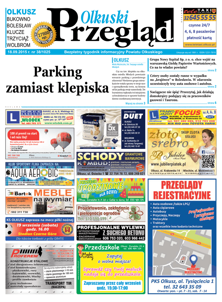 BUKOWNO BOLESŁAW KLUCZE TRZYCIĄŻ WOLBROM Przegl¹d 18.09.2015 r. nr 38/1025 Olkuski Bezpłatny tygodnik informacyjny Powiatu Olkuskiego Parking zamiast klepiska olkusz Wiola Woźniczko, fot. fanpage osiedla Młodych Czy na tzw. klepisku na olkuskim osiedlu Młodych powstanie wreszcie parking z prawdziwego zdarzenia? Niedawno grupa mieszkańców wzięła sprawy w swoje ręce i uporządkowała teren, na ktorym od lat parkują swoje samochody. Do burmistrza wpłynęła też inicjatywa uchwałodawcza w sprawie budowy dawno oczekiwanej inwestycji. R E K L A M A Więcej na stronie 3 R E K L A M A OLKUSZ Ukazuje się od 1991 r. ISSN 1231-7810 Grupa Nowy Szpital Sp. z o. o. chce wejść na warszawską Giełdę Papierów Wartościowych. Co na to władze powiatu? strona 2 Cztery osoby zostały ranne w wypadku na „krajówce” w Bolesławiu. W zdarzeniu uczestniczyły trzy auta osobowe i autobus. strona 2 Naciągacze nie śpią! Przeczytaj, jak działają domokrążcy podający się za pracowników gazowni i Tauronu. strona 6 2 | 18 września 2015 | Przegląd Olkuski Wspólne remonty za dwa lata powiat Wiola Woźniczko Cztery powiatowe drogi będą wspólnie remontowane przez swojego zarządcę oraz gminy, jeśli tylko uda się pozyskać zewnętrzne dotacje. Koncepcja przedstawiona kilka miesięcy temu została właśnie sformalizowana. kwestia przypadku czy lobbowanie radnych – zapowiadał wówczas starosta. Stosowne porozumienie zostało właśnie podpisane przez włodarzy czterech gmin: burmistrza Olkusza Romana Piaśnika, burmistrza Bukowna Mirosława Gajdziszewskiego, wójta Klucz Norberta Bienia i wójta W marcu tego roku olkuski starosta Paweł Piasny zaproponował, aby powiat modernizował jedną swoją drogę w ciągu roku, przy wsparciu finansowym gminy, na terenie której przebiega dany trakt. Pomysł miał być punktem wyjścia do rozmów z włodarzami gmin. Podstawowym kryterium wyboru remontowanych traktów miała być faktyczna potrzeba przeprowadzenia modernizacji, a nie Bolesławia Krzysztofa Dudzińskiego oraz starostę Pawła Piasnego i wicestarostę Jana Orkisza. Zgodnie z zapisami zawartymi w porozumieniu, zaplanowano modernizacje czterech dróg. W 2017 roku inwestycje obejmują ul. 1 Maja w Bukownie oraz drogę Kwaśniów – Cieślin w gminie Klucze. Rok później planuje się modernizację ul. Głównej w Bolesławiu (od krajówki do skrzyżowania w okolicy ZGH), a także drogę Troks – Braciejówka w gminie Olkusz. Warunkiem realizacji tych inwestycji jest uzyskanie dofinansowania ze środków zewnętrznych, w wysokości co najmniej 50 proc. wartości przedsięwzięcia. Samorządowcy ustalili, że w zakresie realizacji inwestycji powiat wraz z każdą z gmin będą ponosić koszty udziału własnego po połowie. www.przeglad.olkuski.pl A R T Y K U Ł S P O N S O R O WA N Y OTBS – INFORMACJA Ostatnio nadal ukazują się jednostronne teksty prasowe, w których rozstrzyga się o winie i odpowiedzialności Zarządu OTBS-u, dotyczącej budowy budynku wielorodzinnego przy ul. Osieckiej, nie precyzujące jasno, którego okresu to dotyczy i którego Zarządu oraz nie biorąc pod uwagę wszystkich opinii. Informuję opinię publiczną, że ja, obecny Prezes Zarządu OTBS-u Czesław Żak w sposób nieuprawniony (ze względu na brak precyzyjnego przekazu) jestem obciążany winą za realizację tej inwestycji. Otóż wyjaśniam, że w latach 2010-2012, kiedy to wykonywano to zadanie, nie byłem Prezesem OTBS-u (obecnie pełnię tą funkcję od 04.12.2013r., poprzednio do 27.02.2009 r.) ani Członkiem Zarządu i nie mogę być za nie odpowiedzialny. Nie zwalnia mnie to jednakże, jako obecnego Prezesa od reprezentowania interesów Spółki. Toteż (co naturalne), obecny Zarząd udziela (na podstawie dokumentów i relacji) wyjaśnień, przedstawia opinie oraz przygotowuje z pełnomocnikiem prawnym dokumenty procesowe w dbałości o to, by Spółka w związku z okolicznościami i roszczeniami związanymi z tą budową, poniosła jak najmniejsze straty. Prezes OTBS-u Czesław Żak Olkuski szpital wejdzie na giełdę? Olkusz J.F. Grupa Nowy Szpital spółka z o.o. w Szczecinie zarządzająca szpitalem powiatowym w Olkuszu planuje zmianę struktury własnościowej spółki. Jedna z największych prywatnych sieci medycznych, która zarządza dwunastoma szpitalami na terenie kraju, chce wyemitować swoje akcje i wejść na warszawską Giełdę Papierów Wartościowych. Plan ten podyktowany jest chęcią wyjścia ze spółki jednego z jej udziałowców, i co za tym idzie, koniecznością wykupienia jego udziałów przez drugiego członka obecnej spółki. Grupa Nowy Szpital sp. z o.o. swoją działalność rozpoczęła w 2008 r. Jest ona własnością dwóch udziałowców Adama Roślewskiego i Marcina Szulwińskiego, którzy posiadają równą ilość udziałów w spółce. Grupa Nowy Szpital jest zaś większościowym udziałowcem spółki Nowy Szpital w Olkuszu. Na mocy uchwały Rady Powiatu z 2009 roku posiada ona 70% udziałów w olkuskim szpitalu, podczas gdy pozostałe 30% należy do Powiatu Olkuskiego. W lipcu b.r. pojawiła się informacja, że Grupa Nowy Szpital przygotowuje się do zmian w strukturze własnościowej firmy. W związku z tym, że Adam Roślewski - jeden K O N D O L E N C J E z udziałowców GNS - zadeklarował chęć opuszczenia spółki i odsprzedaży swoich udziałów, podjęto decyzję o przygotowaniu planu pozyskania środków na ich wykupienie. Aby tego dokonać, spółka chce najpierw wyemitować obligacje, które mają posłużyć spłaceniu udziałów wspólnika, który opuszcza spółkę. Następnym krokiem ma być wejście Grupy Nowy Szpital na giełdę papierów wartościowych. Środki pozyskane z emisji akcji mają zostać przeznaczone na spłatę obligacji i nowe inwestycje w szpitalną infrastrukturę. Aby móc sprzedawać inwestorom swoje obligacje na możliwie najlepszych dla siebie warunkach, GNS musi jednak posiadać odpowiednie zabezpiecze