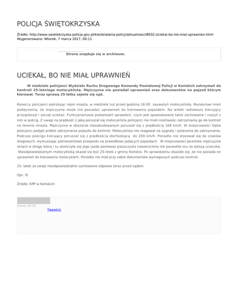 POLICJA ŚWIĘTOKRZYSKA UCIEKAŁ, BO NIE MIAŁ UPRAWNIEŃ