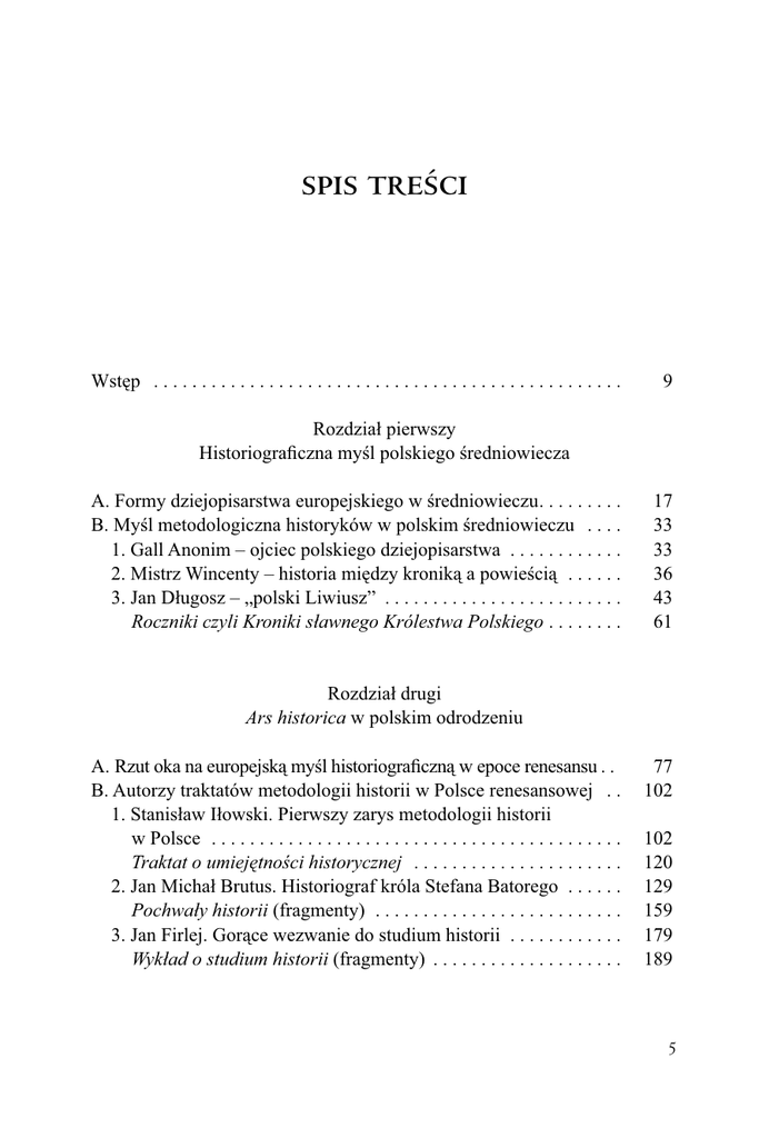 SPIS TREŚCI SPIS TREŚCI Wstęp . . . . . . . . . . . . . . . . . . . . . . . . . . . . . . . . . . . . . . . . . . . . . . . . . 9 Rozdział pierwszy Historiograficzna myśl polskiego średniowiecza A. Formy dziejopisarstwa europejskiego w średniowieczu. . . . . . . . . B. Myśl metodologiczna historyków w polskim średniowieczu . . . . 1. Gall Anonim – ojciec polskiego dziejopisarstwa . . . . . . . . . . . . 2. Mistrz Wincenty – historia między kroniką a powieścią . . . . . . 3. Jan Długosz – „polski Liwiusz” . . . . . . . . . . . . . . . . . . . . . . . . . Roczniki czyli Kroniki sławnego Królestwa Polskiego . . . . . . . . 17 33 33 36 43 61 Rozdział drugi Ars historica w polskim odrodzeniu A. Rzut oka na europejską myśl historiograficzną w epoce renesansu . . B. Autorzy traktatów metodologii historii w Polsce renesansowej . . 1. Stanisław Iłowski. Pierwszy zarys metodologii historii w Polsce . . . . . . . . . . . . . . . . . . . . . . . . . . . . . . . . . . . . . . . . . . . Traktat o umiejętności historycznej . . . . . . . . . . . . . . . . . . . . . . 2. Jan Michał Brutus. Historiograf króla Stefana Batorego . . . . . . Pochwały historii (fragmenty) . . . . . . . . . . . . . . . . . . . . . . . . . . 3. Jan Firlej. Gorące wezwanie do studium historii . . . . . . . . . . . . Wykład o studium historii (fragmenty) . . . . . . . . . . . . . . . . . . . . 77 102 102 120 129 159 179 189 5 SPIS TREŚCI 4. Adam Burski. Obrońca historiograficznej koncepcji Tukidydesa . . . . . . . . . . . . . . . . . . . . . . . . . . . . . . . . . . . . . . . . . . Recenzja poglądu Dionizjusza z Halikarnasu na historię Tukidydesa (fragmenty) . . . . . . . . . . . . . . . . . . . . . . . . . . . . . . . . 5. Bartłomiej Keckermann. Historyka logiczna profesora Gimnazjum Gdańskiego . . . . . . . . . . . . . . . . . . . . . . . . . . . . . . . . Traktat o istocie i właściwościach historii (fragmenty) . . . . . . . . 197 214 235 279 Rozdział trzeci Ars historica polskiego baroku A. Historiograficzna myśl w baroku europejskim . . . . . . . . . . . . . . . . B. Autorzy metodologii historii w Polsce barokowej . . . . . . . . . . . . . 1. Szymon Starowolski – „polski Lipsjusz” . . . . . . . . . . . . . . . . . . Strawa historyczna (fragmenty) . . . . . . . . . . . . . . . . . . . . . . . . . 2. Joachim Pastorius – historyk i pedagog . . . . . . . . . . . . . . . . . . . Wykład o godności historii . . . . . . . . . . . . . . . . . . . . . . . . . . . . . O wybitnych autorach historii . . . . . . . . . . . . . . . . . . . . . . . . . . O właściwych przedmiotach historii (fragmenty) . . . . . . . . . . . 315 332 332 352 382 406 415 419 Zakończenie . . . . . . . . . . . . . . . . . . . . . . . . . . . . . . . . . . . . . . . . . . . . . 427 Aneks. Historiograficzna myśl w starożytności. Polibiusz – Cyceron – Lukian . . . . . . . . . . . . . . . . . . . . . . . . . . . . . . . . . . . . . . . . . . . . . . . 1. Polibiusz. Refleksja metodologiczna w dziele historyka . . . . . . . . Dzieje (fragmenty) . . . . . . . . . . . . . . . . . . . . . . . . . . . . . . . . . . . . . . 2. M. Tulliusz Cyceron. Myśl historiograficzna w dziełach retora, męża stanu i filozofa . . . . . . . . . . . . . . . . . . . . . . . . . . . . . . . . . . . . Pisma różne (fragmenty) . . . . . . . . . . . . . . . . . . . . . . . . . . . . . . . . . 3. Lukian z Samosat. Metodologia historii w opracowaniu sofisty . . . A. Jak nie należy pisać historii . . . . . . . . . . . . . . . . . . . . . . . . . . . . B. Jak powinno się pisać historię (fragmenty) . . . . . . . . . . . . . . . . Bibliografia . . . . . . . . . . . . . . . . . . . . . . . . . . . . . . . . . . . . . . . . . . . . . Indeks osobowy . . . . . . . . . . . . . . . . . . . . . . . . . . . . . . . . . . . . . . . . . . Indeks rzeczowy. . . . . . . . . . . . . . . . . . . . . . . . . . . . . . . . . . . . . . . . . . 6 443 446 458 487 499 514 528 531 539 545 561