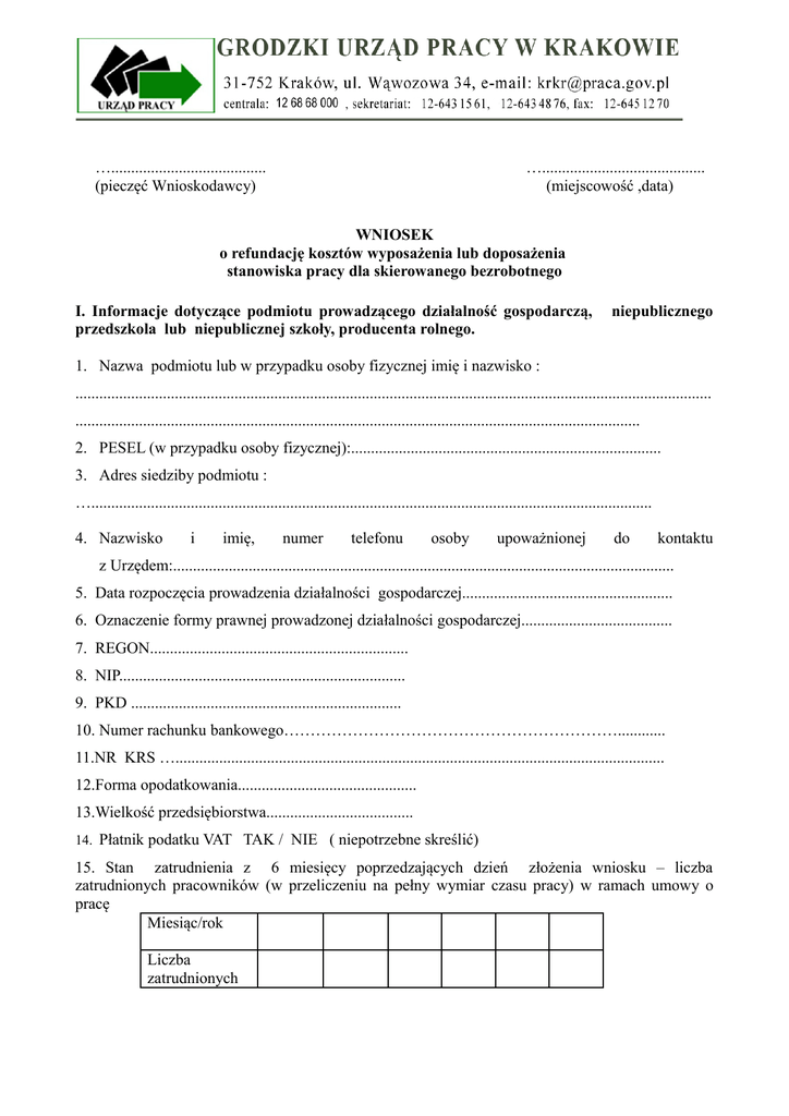 WNIOSEK o refundację kosztów wyposażenia lub doposażenia