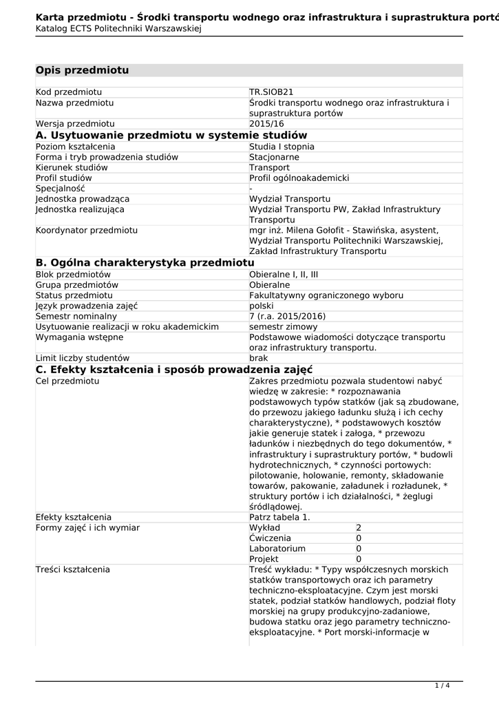 Karta przedmiotu - Wydział Transportu Politechniki Warszawskiej