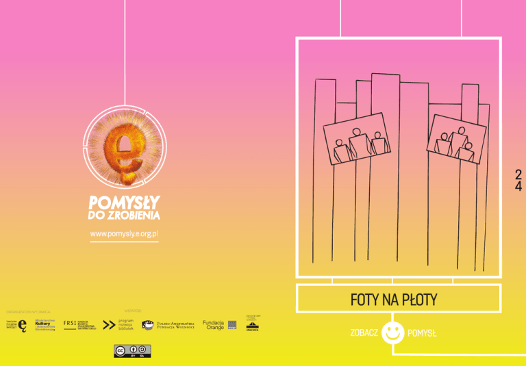 2 4 FOTY NA PŁOTY FOTY NA PŁOTY Czyli jak stworzyć tymczasową galerię zdjęć, która zachęci ludzi do spotkań i rozmów Łaziska na Lubelszczyźnie to mała miejscowość, której mieszkańcy nie mają okazji ani miejsca, aby spotykać się, rozmawiać, robić coś razem. Karolina – mieszkanka Łazisk,i młoda menedżerka kultury wpadła na pomysł, że plenerowa wystawa fotograficzna może pomóc stworzyć taką przestrzeń. Postanowiła sportretować mieszkańców i zaaranżować wystawę zdjęć. Przy wsparciu Małgorzaty, dyrektorki miejscowej biblioteki zorganizowała kilkudniowe warsztaty fotograficzne, w których wzięły udział gimnazjalistki z Łazisk i okolic. Zajęcia poprowadził fotograf, jej kolega. O inicjatywie w niedzielę opowiedział z ambony ksiądz, więc mieszkańcy wiedzieli, na czym akcja będzie polegać, mogli przygotować się do fotografii. W kolejną niedzielę dziewczyny odwiedzały mieszkańców i robiły rodzinne, często wielopokoleniowe portrety. Wszystkich zapraszały na finał projektu, czyli wystawę. Po tygodniu zdjęcia zostały wydrukowane w dużych formatach i powieszone na płotach wzdłuż ulicy przecinającej miejscowość. W piękny, majowy dzień mieszkańcy wylegli na drogę, aby wspólnie obejrzeć efekty – siebie i sąsiadów na zdjęciach. Ulica zamieniła się w galerię, a mieszkańcy mieli okazję do spotkania i temat do rozmów. Akcja była pierwszym krokiem do realizacji kolejnych działań, których celem jest ożywienie miejscowości i integracja jej mieszkańców, a także poszerzenie oferty biblioteki. program „Młodzi menedżerowie kultury w bibliotekach” Towarzystwa Inicjatyw Twórczych „ę” Karolina Suska, Małgorzata Wojciechowska Łaziska, Biblioteka Gminna www.fotynaploty.blogspot.com animatorów: 2 uczestników: 10 przygotowanie: 7–10 dni realizacja: 3 tygodnie miejsce do spotkań, aparaty fotograficzne, komputer, sznurek albo trytki (opaski do kabli), materiały plastyczne do promocji (papier, farby, flamastry) CZAS NARZĘDZIA LICZBA OSÓB STOPIEŃ TRUDNOŚCI 1 2 3 4 KROK PO KROKU Przygotowanie i zebranie uczestników W pierwszej kolejności musimy ocenić, czy jesteśmy w stanie samodzielnie zrealizować działanie, czy potrzebujemy wsparcia osoby, która może poprowadzić warsztaty fotograficzne. Potem decydujemy, kogo zapraszamy do udziału i gromadzimy grupę około 10 chętnych osób. Warsztaty fotograficzne W trakcie zajęć zapoznajemy uczestników z funkcjami i możliwościami aparatów, a także przygotowujemy do robienia zdjęć mieszkańcom. Podkreślmy, że fotografując ludzi, musimy uwględniać ich sugestie i potrzeby. Dobrze jest spotkać się kilka razy, będziemy mieli wtedy czas na omówienie kolejnych etapów działania. Akcja fotograficzna Zanim pójdziemy do mieszkańców z propozycją wykonania zdjęcia, dobrze jest ich uprzedzić, żeby mogli się przygotować. Ogłoszenia możemy rozdać osobiście, posłużyć się plakatami lub poprosić o pomoc np. lokalne media albo księdza. Fotografowanie dobrze jest zorganizować w niedzielę – wtedy zwykle ludzie mniej się spieszą, spędzają czas w domach z rodzinami. W ramach akcji odwiedzamy wszystkie domy w miejscowości – fotografujemy jednak tylko tych, którzy wyrażą chęć. Wszystkim udzielamy pełnej informacji o celu i przebiegu działania. Fotografować możemy w ustalonej wcześniej konwencji – np. zawsze przed domem lub zawsze w ustawieniu od najmniejszego do największego. To nada spójności i siły końcowemu efektowi. Wystawa na płotach Zdjęcia drukujemy w drukarni lub laboratorium fotograficznym. Pamiętajmy, aby wydrukować fotografie wszystkich osób, które wzięły udział w akcji. Dobrze jest zrobić wydruki na banerach lub innym trwałym materiale (np. na wypadek deszczu) – warto o radę zapytać w drukarni. Gotowe fotografie wieszamy na płotach, np. przywiązując sznurkami. Dla efektu możemy wieszać zdjęcia zasłonięte szarym papierem. O umówionej godzinie witamy zebranych mieszkańców, odsłaniamy zdjęcia, dziękujemy za udział w akcji i – jeśli to możliwe – informujemy o naszych dalszych planach tworzonych z myślą o mieszkańcach. Pamiętajmy, żeby przekazać sfotografowanym osobom odbitki lub pliki ze zdjęciami. WARIANTY Akcja może być zrealizowana szybciej i prościej – warsztaty fotograficzne mogą być jednodniowe (np. odbyć się w sobotę), a akcja fotografowania już następnego dnia (w niedzielę). Wernisaż zdjęć można zorganizować już po tygodniu. W przypadku braku środków na duże wydruki na banerach można wydrukować zdjęcia mniejsze (np. 20x30 cm) i dla bezpieczeństwa zalaminować. Działanie można również rozwinąć – poza akcją fotograficzną zebrać wypowiedzi mieszkańców na określony wcześniej temat (np. przyszłość miejscowości) lub zebrać opowieści o przeszłości. W takim wariancie zdjęcia warto prezentować razem ze zredagowanymi i przygotowanymi tekstami.
