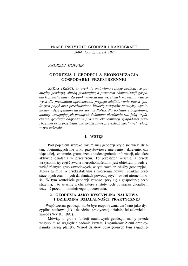 andrzej hopfer geodezja i geodeci a ekonomizacja gospodarki