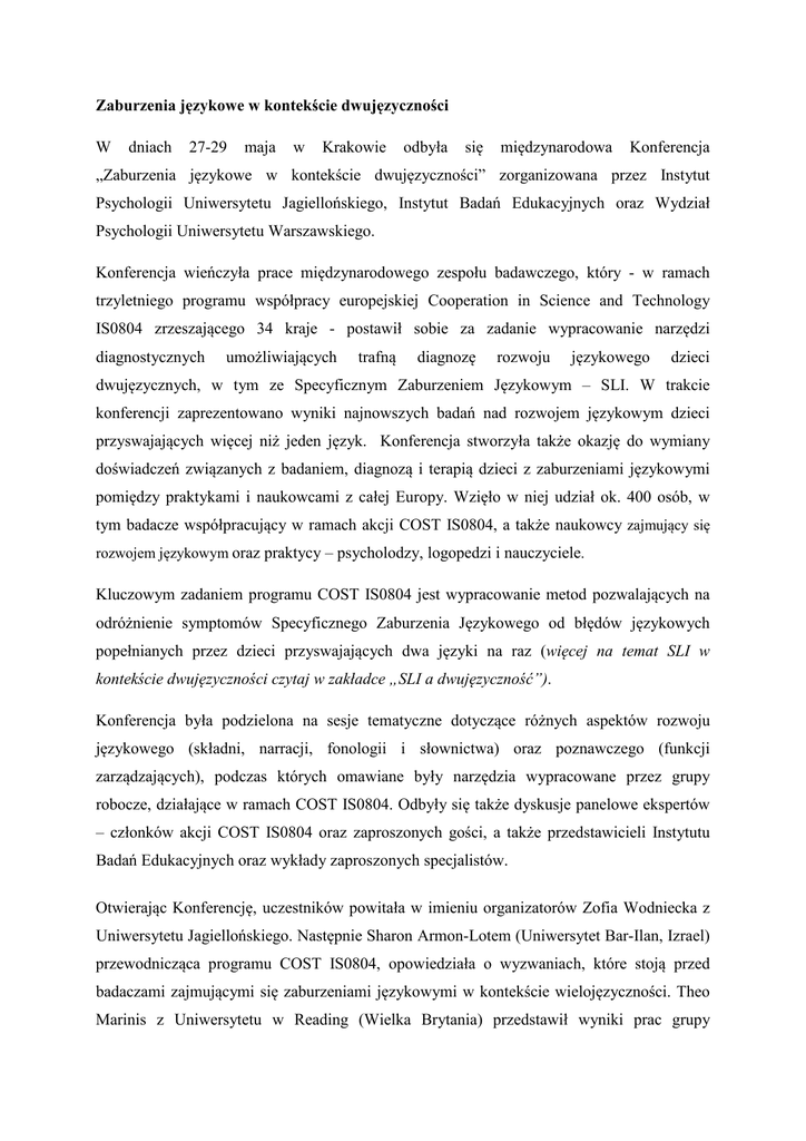 Zaburzenia językowe w kontekście dwujęzyczności W dniach 27