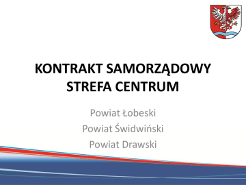 KONTRAKT SAMORZĄDOWY STREFA CENTRUM Powiat Łobeski Powiat Świdwiński Powiat Drawski Istota Kontraktu Samorządowego • Założeniem Kontraktu Samorządowego (KS) jest urzeczywistnienie idei planowania i realizowania procesów rozwojowych w województwie zachodniopomorskim w oparciu o ich wymiar terytorialny. • KS jest negocjacyjnym narzędziem dla planowania i realizacji zintegrowanych przedsięwzięć istotnych dla rozwoju danego obszaru, tworzonym w oparciu o współpracę wszystkich partnerów procesów rozwojowych (samorząd, przedsiębiorcy, sektor edukacji i nauki, organizacje pozarządowe, w tym Lokalne Grupy Działania, Lokalne Grupy Rybackie, itp.) obecnych na danym obszarze. • KS realizowany będzie przede wszystkim w celu wzmocnienia rozwoju gospodarczego, będącego podstawą do zapewnienia spójności społecznej i infrastrukturalnej w oparciu o tzw. priorytety inwestycyjne w ramach RPO WZ na lata 2014 - 2020. Istota Kontraktu Samorządowego • Obszar realizacji Kontraktu Samorządowego to umocowana prawnie reprezentacja samorządów województwa zachodniopomorskiego na, którym zidentyfikowane zostały jednorodne wspólne potencjały gospodarcze i /lub problemy ograniczające uruchomienie tych potencjałów. Tezy diagnostyczne dot. sytuacji gospodarczej, społecznej i infrastrukturalnej. • Komplementarność jest kluczem do jakościowej oceny KS. Im szerzej i bardziej kompleksowo tym silniejsza pozycja negocjacyjna. • KS powinien dotyczyć najmniej trzech sąsiadujących ze sobą gmin. • Powiaty mogą uczestniczyć w realizacji kilku KS, w których uczestniczą gminy danego powiatu. Na obszarze danej gminy będzie realizowany tylko jeden Kontrakt Samorządowy . Istota Kontraktu Samorządowego • Wspólne potencjały i cele rozwojowe • Rzeczywiste powiązania funkcjonalne • Możliwość wspólnej realizacji działań odpowiadających danemu terytorium Cele realizacji Kontraktu Samorządowego? Przede wszystkim: • koncentracja zasobów i środków interwencji na obszarach tematycznych, służących najpierw rozwojowi gospodarczemu wskazanych specjalizacjach regionu, • realizacja komplementarnych projektów wdrażanych przez JST oraz innych partnerów (np. przedsiębiorcy, organizacje pozarządowe), • sprzyjanie rozwojowi współpracy, integracji i koordynacji działań JST z innymi partnerami na obszarach KS (w tym przedsiębiorcami, LGD, LGR, organizacjami pozarządowymi, IOB, itp.), • wzmacnianie idei współkształtowania i koordynowania przedsięwzięć rozwojowych realizowanych wspólnie przez samorządy lokalne • zapewnienie spójności polityk lokalnych z polityką rozwoju regionu Cele realizacji Kontraktu Samorządowego? • Realizacja Kontraktów Samorządowych powinna w pierwszej kolejności ogniskować się wokół budowy podstaw do rozwoju gospodarczego obszarów nim objętych (np. infrastruktura transportowa, uzbrojenie terenów inwestycyjnych, kształcenie zawodowe na potrzeby lokalnych firm, rozwój kapitału społecznego). • Mając na uwadze zakres interwencji RPO WZ 2014 – 2020 planuje się wskazanie Priorytetów Inwestycyjnych (PI) podstawowych, które wspierać będą realizację projektów stanowiących progospodarczy rdzeń Kontraktu Samorządowego. Dotyczy to PI wdrażanych zarówno w trybie pozakonkursowym (JST) oraz konkursowym (pozostali partnerzy KS – NGO, IOB, przedsiębiorcy). • Obok PI podstawowych wskazane zostaną PI uzupełniające, z których powinny dopełniać progospodarczy wymiar interwencji KS. Kontrakt Samorządowy Strefa Centrum prowadzony przez Powiat Drawski Powiat Drawski 1. Drawsko Pomorskie 2. Złocieniec 3. Kalisz Pomorski 4. Czaplinek 5. Wierzchowo 6. Ostrowice Powiat Świdwiński 1. Połczyn-Zdrój 2. Świdwin (gmina wiejska) 3. Brzeżno 4. Rąbino 5. Sławoborze Powiat Łobeski 1. Łobez 2. Resko 3. Węgorzyno 4. Radowo Małe Powiat Choszczeński 1. Drawno 2. Recz KS „Strefa Centrum” obejmuje 17 gmin Projekty priorytetowe planowane do realizacji w ramach KS SC 1. 2. 3. Podnoszenie konkurencyjności gospodarczej strefy centrum poprzez dostosowanie infrastruktury technicznej do potrzeb inwestorów strategicznych. Wartość projektu 138,2 mln. Realizacja w latach 2015-2019. Budowa zintegrowanego szkolnictwa zawodowego na terenie obszaru centrum, poprzez wzmocnienie specjalizacji regionalnej w poszczególnych powiatach. Wartość projektu 18,825 mln. Realizacja w latach 2015-2019. Budowa i zapewnienie zintegrowanego systemu wsparcia niepełnosprawnych mieszkańców województwa zachodniopomorskiego poprzez zapewnienie standaryzowanej opieki społecznej w Domach Pomocy Społecznej w strefie centrum oraz rozwój dedykowanej turystyki specjalistycznej. Wartość projektu 21,8 mln. Realizacja w latach 2015-2019. 4. Modernizacja ciągu dróg powiatowych 1080z Świdwin - Łabędzie i 4330z Łabędzie-Łobez jako systemu rozwoju konkurencyjności gospodarczej obszaru centrum. Wartość projektu 27,6 mln. Realizacja w latach 20152017. KS i projektowane w ich ramach projekty powinny koncentrować się w wokół zdefiniowanych obszarów gospodarki regionu: • • • • • biogospodarka działalność morska i logistyka przemysł maszynowo-metalowy usługi przyszłości turystyka i zdrowie Kontrakt Samorządowy Strefy Centrum (KS SC) dotychczasowe działania • 11 lutego 2014 podpisano list intencyjny w sprawie budowy partnerstwa dla rozwoju obszaru Powiatów Drawskiego, Łobeskiego i Świdwińskiego • Powstał ramowy układ koncepcji Kontraktu Samorządowego Strefy Centrum, który stanowi podstawę do negocjacji KS SC z samorządem województwa • Opracowaniem fiszki stanowiącej podstawę KS SC zajmował się zespół roboczy w skład którego weszli przedstawiciele każdego z partnerów KS SC propozycje projektów, które zostały zgłoszone do realizacji w ramach KS SC w latach 2014 – 2020. Kontrakt Samorządowy Strefy Centrum (KS SC) dotychczasowe działania • Zebrane fiszki zostały 