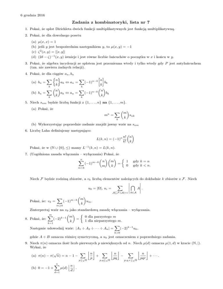 Zadania z kombinatoryki, lista nr 7