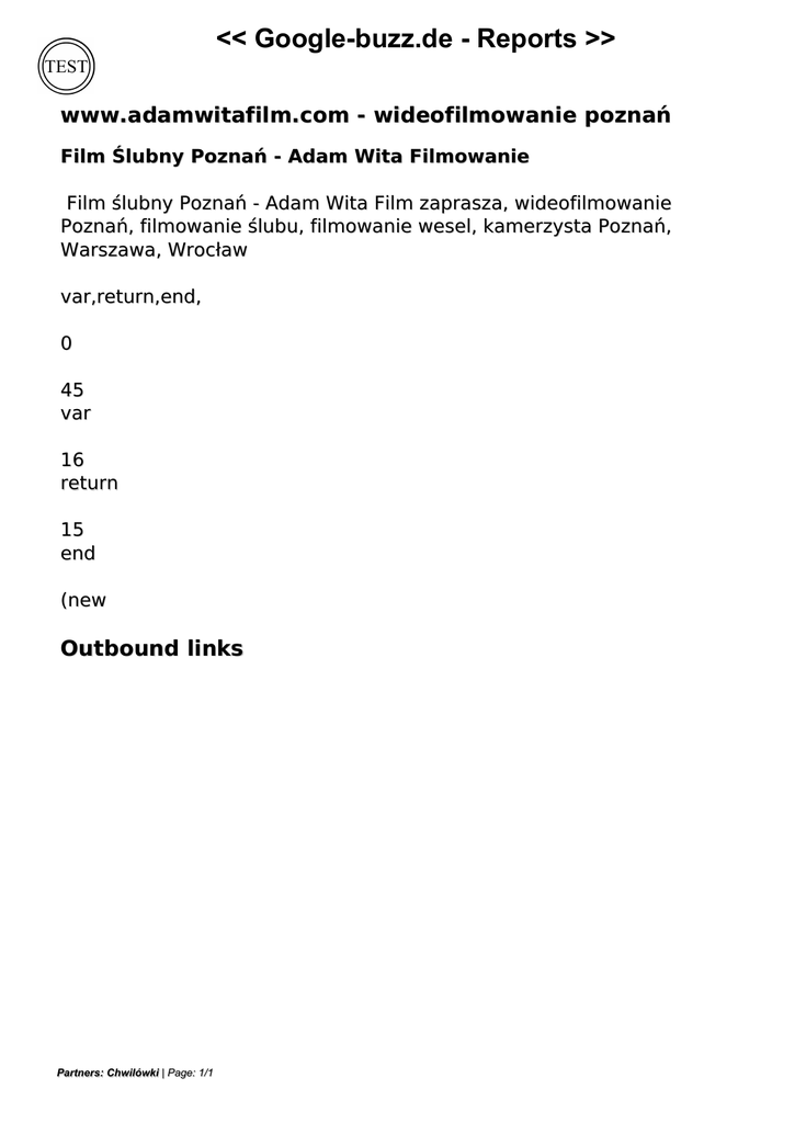 << Google-buzz.de - Reports >> www.adamwitafilm.com - wideofilmowanie poznań Film Ślubny Poznań - Adam Wita Filmowanie Film ślubny Poznań - Adam Wita Film zaprasza, wideofilmowanie Poznań, filmowanie ślubu, filmowanie wesel, kamerzysta Poznań, Warszawa, Wrocław var,return,end, 0 45 var 16 return 15 end (new Outbound links Partners: Chwilówki | Page: 1/1 Powered by TCPDF (www.tcpdf.org) Powered by TCPDF (www.tcpdf.org)