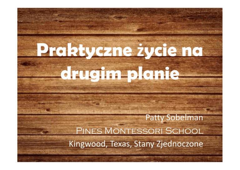 Praktyczne życie na drugim planie Patty Sobelman Pines Montessori School Kingwood, Texas, Stany Zjednoczone Praktyczne życie na drugim planie Kim są te nowe dzieci? Praktyczne życie na drugim planie Kilka miesięcy temu chciały rozwijać wyłącznie własne umiejętności. Praktyczne życie na drugim planie Teraz najlepiej im się pracuje w towarzystwie rówieśników. Praktyczne życie na drugim planie Wypuszczają się poza krąg bliskich przyjaciół i rodziny. Praktyczne życie na drugim planie Przeżywają niezwykle zdrowy okres. Praktyczne życie na drugim planie Chodzi o ten piękny okres. Wczesne dzieciństwo Early Childhood 1st Plane 1. plan Wczesna 2nd Plane 2. plan dorosłość Adolescence 3rd Plane 3. plan Praktyczne życie na drugim planie Przeszły już wszystkie choroby wieku dziecięcego… Praktyczne życie na drugim planie … ale wciąż czeka je Dojrzewanie! Praktyczne życie na drugim planie Rozszerzają swoje horyzonty intelektualne. Praktyczne życie na drugim planie Świetnie sobie radzą z nauką… Praktyczne życie na drugim planie …i starają się zrozumieć otaczający je świat. Praktyczne życie na drugim planie Ten etap życia można uznać za Nudny! Praktyczne życie na drugim planie Jednak właśnie teraz dziecko wykształca poczucie moralności. Praktyczne życie na drugim planie Poczucie “sprawiedliwości społecznej”… Praktyczne życie na drugim planie …długo jeszcze sprowadzać się będzie do “to nie fair”! Praktyczne życie na drugim planie Zgromadzona dotychczas wiedza – konkretna i rzeczowa… Praktyczne życie na drugim planie … w procesie dalszej nauki wspomagana będzie wyobraźnią. Practical Life for the Second Plane Dzieci są już w stanie zrozumieć coś, czego nie widziały. Praktyczne życie na drugim planie Rozwijają zdolność logicznego myślenia. Praktyczne życie na drugim planie Przejawiają poczucie humoru… Praktyczne życie na drugim planie Zaczynają się uczyć w sposób świadomy. Praktyczne życie na drugim planie Ich celem stają się konkretne umiejętności i wiedza na konkretne tematy. Praktyczne życie na drugim planie Jak zatem możemy wspierać ich świadomą naukę? Praktyczne życie na drugim planie Czego możemy się spodziewać? Praktyczne życie na drugim planie Jakie doświadczenia są potrzebne dzieciom na drugim planie? Jaką wiedzę muszą zdobyć, jakie umiejętności wyćwiczyć i udoskonalić? Praktyczne życie na drugim planie W domu Wstawanie na sygnał Ubieranie się Przygotowanie się na nadchodzący dzień Praktyczne życie na drugim planie W domu Przygotowanie śniadania Napełnianie bidonu Pakowanie drugiego śniadania Praktyczne życie na drugim planie Pamiętanie o tym, by wychodząc do szkoły wziąć plecak, posiłek, płaszcz, oraz o tym, by przynieść to wszystko z powrotem do domu. Praktyczne życie na drugim planie W szkole Samodzielne przechodzenie z samochodu do budynku i noszenie swoich rzeczy. Praktyczne życie na drugim planie Obsługiwanie siebie i innych. Praktyczne życie na drugim planie Nakrywanie do stołu. Praktyczne życie na drugim planie Zarządzanie czasem i trzymanie się planu zajęć, przynajmniej jego większości. Praktyczne życie na drugim planie Samodzielne odrabianie lekcji i oddawanie prac w terminie. Praktyczne życie na drugim planie Wymyślanie własnych projektów… Praktyczne życie na drugim planie …i gromadzenie przyborów niezbędnych do ich realizacji. Praktyczne życie na drugim planie Pomaganie w ogródku. Praktyczne życie na drugim planie Mycie samochodu. Praktyczne życie na drugim planie Listowne dziękowanie za prezenty. Praktyczne życie na drugim planie Zmywanie naczyń. Praktyczne życie na drugim planie Składanie i roznoszenie prania. Praktyczne życie na drugim planie Pomaganie innym w pracy. Praktyczne życie na drugim planie Dbanie o żywe istoty. Praktyczne życie na drugim planie Wypełnianie obowiązków. Praktyczne życie na drugim planie Praktyczna niezależność. Praktyczne życie na drugim planie Wycieranie rozlanego picia i jedzenia. Praktyczne życie na drugim planie Codzienne słanie łóżka. Praktyczne życie na drugim planie Sprzątanie po sobie. Praktyczne życie na drugim planie Pamiętanie o dobrych manierach. Praktyczne życie na drugim planie Opieka nad zwierzętami. Praktyczne życie na drugim planie Pomaganie innym w potrzebie. Praktyczne życie na drugim planie Odkładanie rzeczy na miejsce. Praktyczne życie na drugim planie Szanowanie przełożonych. Praktyczne życie na drugim planie Sortowanie śmieci (recykling i kompostowanie) Praktyczne życie na drugim planie Zamiatanie i odkurzanie podłóg. Praktyczne życie na drugim planie Czytanie na głos – sobie, rodzicom, rodzeństwu. Praktyczne życie na drugim planie Mówienie proszę i dziękuję. Practical Life for the Second Plane Wspólne rozwiązywanie problemów. Practical Life for the Second Plane Mediacja rówieśnicza. Praktyczne życie na drugim planie Zamawianie przez telefon / internet. Praktyczne życie na drugim planie Sortowanie i robienie prania. Praktyczne życie na drugim planie Adresowanie koperty. Praktyczne życie na drugim planie Wypożyczanie książki z biblioteki. Praktyczne życie na drugim planie Odbieranie telefonu i dzwonienie. Praktyczne życie na drugim planie Zbieranie pieniędzy na szczytny cel. Praktyczne życie na drugim planie Rozmienianie pieniędzy. Praktyczne życie na drugim planie Działanie zespołowe. Praktyczne życie na drugim planie Gotowanie i pieczenie. Praktyczne życie na drugim planie Tak właśnie my nauczyliśmy się tego co wiemy teraz Praktyczne życie na drugim planie Tak właśnie ludzie uczą się od zarania dziejów. Praktyczne życie na drugim planie Praktyczne życie na drugim planie Praktyczne życie na drugim planie Praktyczne życie na drugim planie Praktyczne życie na drugim planie Praktyczne życie na drugim planie Praktyczne życie na drugim planie W Lekcjach Praktyczneg