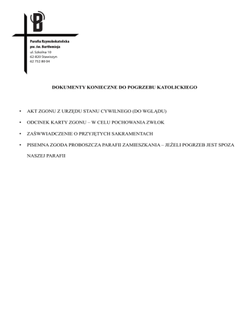 DOKUMENTY KONIECZNE DO POGRZEBU KATOLICKIEGO • AKT