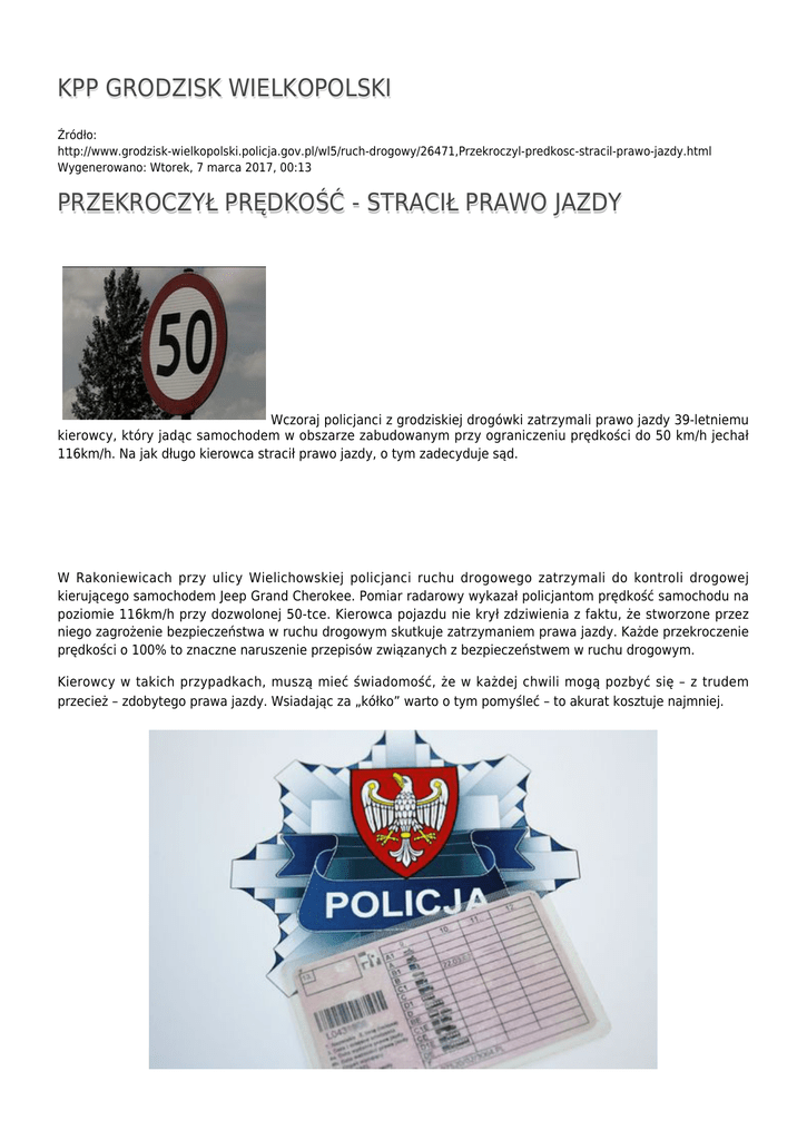 KPP GRODZISK WIELKOPOLSKI PRZEKROCZYŁ PRĘDKOŚĆ
