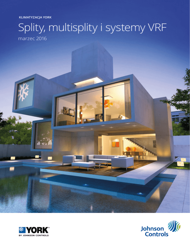 KLIMATYZACJA YORK Splity, multisplity i systemy VRF marzec 2016 W Johnson Controls widzimy budynki w sposób, który wykracza poza granice wyobraźni większości ludzi. Kiedy patrzymy na budynek, widzimy coś więcej poza betonem i cegłą. Poza stalą i szkłem. Patrzymy szerzej. Widzimy siłę ludzkiego przedsięwzięcia. Dlatego tworzymy budynki i otoczenia, które pomagają ludziom osiągać ich cele – a to pozwala budynkom, organizacjom i ludziom w pełni wykorzystać ich potencjał. PRODUKTY KLIMATYZACYJNE YORK 04/05 Systemy do budynków mieszkalnych i VRF Rozwiązania klimatyzacyjne Pod względem produktów klimatyzacyjnych rynek docelowych konsumentów jest bardzo różnorodny. Na podstawie prezentowanego katalogu nasi klienci będą mogli wybrać najlepsze dla siebie rozwiązanie spośród różnych opcji systemów do budynków mieszkalnych oraz systemów VRF adresowanych do rynku obiektów komercyjnych. Johnson Controls pragnie zaoferować wszelkie dostępne rozwiązania dostosowane do najróżniejszych pod względem projektowym i technicznym wymogów, a klimatyzacja stanowi znaczącą część tych globalnych rozwiązań. Większość naszych produktów ma już klasę energetyczną A, by zagwarantować swym użytkownikom wysoki poziom komfortu. Podążając za zapotrzebowaniem rynku, oferujemy naszym klientom szeroki wybór najlepszych rozwiązań dostosowanych do określonych cech budynku. SYSTEMY VRF ( Jednostki zewnętrzne) ROZWIĄZANIA TYPU MINISPLIT • • • • • • • • Ścienne z inwerterem Typu multisplit z inwerterem Przypodłogowo-sufitowe z inwerterem Kasetonowe z inwerterem Kanałowe z inwerterem Przypodłogowo-sufitowe WŁ./WYŁ. Kasetonowe WŁ./WYŁ. Kanałowe WŁ./WYŁ. • Wydajność od 9 do 211 kW • Roboczy zakres mocy znamionowej (10% – 130%) • Technologia DC Inverter Scroll • Niski poziom hałasu • Wysoka wydajność • Bezproblemowa i szybka instalacja SYSTEMY VRF ( Jednostki wewnętrzne) • Ścienne • Kasetonowe • Konsola z możliwością montażu przypodłogowo-sufitowego • Konsola • Kanałowe • Moduł doprowadzenia świeżego powietrza • Rekuperacja ciepła PRODUKTY KLIMATYZACYJNE YORK 06/07 Zawartość katalogu Wydajność chłodnicza (kW) Str. Systemy typu Split 1.0 Ścienne z wysokowydajnym inwerterem YWHJZH 09 do 24 20 2.5 – 7.0 Ścienne z inwerterem YEHJZH 09 do 24 22 2.7 – 6.5 Ścienne z inwerterem – NOWOŚĆ YLHJZH 09 do 24 24 2.6 – 7.0 Ścienne z inwerterem YJHJZH 09 do 24 26 2.6 – 6.8 Multiinwertery YJU_YH 14 do 45 28 4.1 – 11.8 Przypodłogowo-sufitowe z inwerterem – NOWOŚĆ YGFJZH 12 do 60 32 3.5 – 16 Przypodłogowo-sufitowe z inwerterem YHFJZH 12 do 60 34 3.5 – 14.8 Kasetonowe z inwerterem – NOWOŚĆ YGKJZH 12 do 60 36 3.5 – 16 Kasetonowe z inwerterem YHKJZH 12 do 60 38 3.3 – 14.4 Kanałowe z inwerterem – NOWOŚĆ YGEJZH 12 do 60 40 3.5 – 16 Kanałowe z inwerterem YH3JZH 12 do 24 / YHEJZH 28 do 48 / YHGJZH 48 do 60 42 3.3 – 15.2 Przypodłogowe-sufitowe EOHC 42 do 48 FS 46 12 – 13.2 Kasetonowe EKHC 42 do 48 FS 48 12 – 13.2 Kanałowe EUHC 42 do 60 FT 50 12.2 – 16.0 YV2V 010 do 204 54 9 – 211 Systemy VRF System VRF Amazon Standard Ambient 5.0 10.0 20.0 50.0 100.0 200.0 PRODUKTY KLIMATYZACYJNE YORK 08/09 Systemy minisplit z inwerterem KLIMATYZATORY ŚCIENNE TYPU MULTISPLIT DOWOLNIE KONFIGUROWALNE PRZYPODŁOGOWO-SUFITOWE KASETONOWE KANAŁOWE PRODUKTY KLIMATYZACYJNE YORK 10/11 wysoki komfort W YSOKOW YDAJNE Z INWERTEREM Klimatyzatory ścienne z inwerterem zostały zaprojektowane z myślą o komforcie i zrównoważonym rozwoju. Technologia sprężarki DC Inverter zainstalowanej w prezentowanych urządzeniach, której głównym priorytetem jest komfort pozwala osiągać doskonałą wydajność urządzeń zarówno w trybie grzania, jak i chłodzenia. Jednocześnie wahania temperatury w pomieszczeniu ulegają zminimalizowaniu, a głośność pracy staje się niższa. Elektrostatyczny filtr z wkładem z aktywnego węgla podnosi jakość powietrza, a system żaluzji z elektrycznym napędem sprawia że powietrze jest równomiernie rozprowadzane w obrębie całego pomieszczenia. Zrównoważony rozwój? To ze względu na to, że wysoka sprawność klimatyzatorów przekłada się na bardzo niskie zużycie energii, czyniąc prezentowane urządzenia najbardziej efektywnymi na rynku. Stosowane materiały nie zawierają substancji szkodliwych i nadają się do recyklingu. Wszystko to sprawia, że urządzenia te są odpowiednim wyborem dla klimatyzacji Twojego domu. PRODUKTY KLIMATYZACYJNE YORK 12/13 SYSTEM INWERTEROWY WYŻSZA WYDAJNOŚĆ I KOMFORT SYSTEM TRADYCYJNY SYSTEM INWERTEROWY Moc sprężarki Temperatura wewnętrzna Pożadana temperatura ENERGOOSZCZĘDNOŚĆ 44% OSZCZĘDNOŚĆ ENERGII Klimatyzatory tradycyjne Klimatyzatory z INWERTEREM DC Technologia oparta na zastosowaniu inwertera DC steruje częstotliwością pracy sprężarki, co przekłada się m.in. na poniższe zalety: • Oszczędność energii poprzez niedopuszczanie do szczytów poboru energii przez sprężarkę występujących w porównywalnych systemach typu WŁ./WYŁ. • Sprężarki z inwerterem zmniejszają obroty, zyskując na sprawności • Wahania temperatury w pomieszczeniu są mniejsze, przez co podwyższony zostaje komfort • Zadana temperatura osiągana jest szybciej dzięki elastyczności systemu, który pozwala osiągać o 30% większą moc niż moc nominalna • Ogólnie praca urządzenia jest płynniejsza i cichsza PRODUKTY KLIMATYZACYJNE YORK 14/15 OPCJE FILTRÓW DLA CZYSTEGO I ZDROWEGO POWIETRZA FILTR STANDARDOWY FILTR Z JONAMI SREBRA Filtry te zapobiegają przedostawaniu się do pomieszczenia większych zanieczyszczeń, tworząc barierę zatrzymującą kurz i owady. Filtr z jonami srebra zabija bakterie zawarte w powietrzu oraz ogranicza rozwój mikrobów takich jak: bakterie, wirusy, grzyby oraz zarodniki poprzez niszczenie ich wewnętrznej struktury oraz absorpcję elementów komórek. FILTR PLAZMO