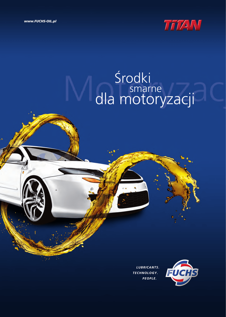 www.FUCHS-OIL.pl Ârodki smarne dla motoryzacji ÂRODKI SMARNE TECHNOLOGIA LUDZIE ■ Najwi´kszy na Êwiecie niezale˝ny producent Êrodków smarnych ■ Kompletna gama Êrodków smarnych dla motoryzacji i przemys∏u ■ Ârodki, które chronià i smarujà od poczàtku – Fuchs liderem w nape∏nianiu fabrycznym w Niemczech ■ Fabryki na ca∏ym Êwiecie, m.in. w Gliwicach 2 Liczby i fakty ZAK¸AD PRODUKCYJNY W POLSCE: GLIWICE , PRZYNALE˚NOÂC: FUCHS PETROLUB SE G¸ÓWNA SIEDZIBA: Mannheim, Niemcy PRAWDZIWY SPECJALISTA W ZAKRESIE ÂRODKÓW SMARNYCH: 100% koncentracja na Êrodkach smarnych PE¸NA GAMA PRODUKTÓW: ponad 2 000 produktów CERTYFIKOWANY PRZEZ: DIN EN ISO 9001:2008, DIN EN ISO 14001:2004 Od ponad 80 lat wszelkie dzia∏ania oraz projekty badawcze koncentrujemy na rozwoju innowacyjnych Êrodków smarnych. Nasza specjalizacja na tym polu oznacza ciàg∏y wzrost – zarówno geograficzny, jak i techniczny. Nieustannie udoskonalamy i rozwijamy zakres zastosowaƒ naszych nowoczesnych produktów. Dzisiaj Fuchs jest firmà oferujàcà najwy˝szej klasy Êrodki smarne na ca∏ym Êwiecie, w ka˝dej ga∏´zi przemys∏u. Co sprawia, ˝e nasze produkty sà tak wartoÊciowe? Opracowujemy Êrodki smarne do konkretnego zastosowania, dopasowane do wymogów i procesów produkcyjnych naszych partnerów. Wspólnie poszukujemy najlepszych rozwiàzaƒ dla klientów. Taki rodzaj wspó∏pracy jest unikalny w swojej formie i zakresie. W naszej dzia∏alnoÊci opieramy si´ na jednym kluczowym czynniku: jesteÊmy najwi´kszym na Êwiecie niezale˝nym producentem Êrodków smarnych. I w∏aÊnie ta niezale˝noÊç nas wyró˝nia – wizjonerskie podejÊcie sprawia, ˝e jesteÊmy otwarci na nowe metody i rozwiàzania, które sà podstawà innowacji. A innowacje to znak firmowy Fuchsa. 3 UTRZYMUJEMY ÂWIAT W RUCHU ■ Rozwiàzania skrojone na miar´ w dziedzinie olejów dla motoryzacji ■ Kompletna gama produktów do wszystkich zastosowaƒ w motoryzacji ■ Prze∏omowa technologia XTL® (Xtreme Temperature Lubrication) 4 Prze∏omowa technologia XTL® (Xtreme Temperature Lubrication) Nowa technologia olejów bazowych XTL®, charakteryzujàca si´ ekstremalnie wysokim wskaênikiem lepkoÊci oraz wybitnà odpornoÊcià na starzenie, zapewnia szybszà cyrkulacj´ oleju oraz znacznie zwi´kszonà ochron´ silnika w d∏ugim okresie. Podczas rozruchu, oleje silnikowe w technologii XTL® ∏atwiej i szybciej docierajà do wspó∏pracujàcych elementów silnika - nawet w ekstremalnych warunkach pracy, w ca∏ym okresie pomi´dzy wymianami. Oznacza to ∏atwiejszy rozruch silnika i mniejsze zu˝ycie jego elementów, a ponadto ograniczenie zu˝ycia paliwa. Dodatkowo, w porównaniu z konwencjonalnym olejem, zu˝ycie oleju w trakcie eksploatacji równie˝ ulega zmniejszeniu. ® TECHNOLOGY 5 Ârodki smarne dla motoryzacji Spis treÊci 6 1 Oleje silnikowe | Oleje silnikowe – samochody osobowe str. 8 Oleje silnikowe – flota mieszana str. 10 Oleje silnikowe – pojazdy u˝ytkowe str. 11 Oleje silnikowe jednosezonowe str. 14 Oleje do silników stacjonarnych zasilanych gazem str. 15 Oleje silnikowe – sprz´t p∏ywajàcy str. 16 Oleje do silników dwusuwowych str. 16 2 Oleje przek∏adniowe | Oleje przek∏adniowe – samochody osobowe str. 17 Oleje przek∏adniowe – pojazdy u˝ytkowe str. 18 Oleje przek∏adniowe – samochody osobowe i pojazdy u˝ytkowe str. 19 Oleje wielofunkcyjne – maszyny budowlane str. 20 Oleje do przek∏adni automatycznych (ATF) str. 21 Oleje do przek∏adni dwusprz´g∏owych (DCTF) str. 23 3 Oleje hudrauliczne | str. 24 4 Produkty specjalne | P∏yny hamulcowe str. 25 P∏yny do uk∏adów ch∏odzenia str. 25 Dodatki do paliw str. 27 Ochrona przed korozjà str. 27 Ârodki myjàce str. 27 5 Smary | str. 28 7 1 OLEJE SILNIKOWE Oleje silnikowe – samochody osobowe TITAN GT1 SAE 0W-20 ® XTL TECHNOLOGY Dopuszczenia Rekomendacje FUCHS ACEA C2 API SL ILSAC GF-4 Najwy˝szej jakoÊci olej silnikowy o prze∏omowej klasie lepkoÊci, opracowany w najnowszej technologii XTL w oparciu o unikalne dodatki bezcynkowe. Przeznaczony do pojazdów o najwy˝szych osiàgach, nap´dzanych silnikami benzynowymi oraz diesla. Olej silnikowy najwy˝szej jakoÊci, oparty na technologii XTL. Jest pierwszym produktem na rynku, który posiada dopuszczenie BMW LONGLIFE-14 FE+. Przeznaczony jest do najnowszych, paliwooszcz´dnych silników benzynowych BMW. Gwarantuje krótki czas rozruchu silnika oraz dotarcia oleju do w´z∏ów smarowania (nawet przy bardzo niskich temperaturach), redukcj´ zu˝ycia paliwa i mniejsze zu˝ycie oleju. ACEA A1 / B1 TITAN GT1 PRO C-1 SAE 5W-30 Najwy˝szej jakoÊci olej silnikowy do samochodów z filtrami czàstek sta∏ych o wyd∏u˝onych i standardowych przebiegach pomi´dzy wymianami. ACEA C1 TITAN GT1 PRO C-2 SAE 5W-30 Najwy˝szej jakoÊci olej silnikowy do samochodów koncernu PSA z filtrami czàstek sta∏ych o wyd∏u˝onych i standardowych przebiegach pomi´dzy wymianami. ACEA C2 API SN/SM/CF PSA B71 2290 FIAT 9.55535-S1 HONDA IVECO 18-1811 CLASSE SC1 MAZDA SUBARU SUZUKI TOYOTA TITAN GT1 PRO C-3 SAE 5W-30 Najwy˝szej jakoÊci olej silnikowy opracowany w nowej technologii XTL dla maksymalnego u∏atwienia rozruchu zimnego silnika i poprawy jego osiàgów. Przeznaczony do nowoczesnych silników z wyd∏u˝onymi oraz standardowymi okresami serwisowymi. Opracowany specjalnie do pojazdów VW i Mercedes Benz wyposa˝onych w filtry czàstek sta∏ych. ACEA C3 BMW LONGLIFE-04 MB-APPROVAL 229.51 PORSCHE C30 VW 504 00/507 00 FIAT 9.55535-S3 FORD M2C917-A TITAN GT1 PRO C-4 SAE 5W-30 Najwy˝szej jakoÊci olej silnikowy do pojazdów ze standardowymi i wyd∏u˝onymi okresami wymian. Opracowany do samochodów Renault z turbospr´˝arkà i systemami oczyszczania spalin. ACEA C4 MB-APPROVAL 226.51 RENAULT RN0720 TITAN GT1 PRO FLEX SAE 5W-30 Najwy˝szej jakoÊci olej silnikowy opracowany w nowej technologii XTL dla maksymalnego u∏atwienia rozruchu zimnego silnika i poprawy jeg