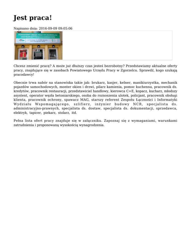 Jest praca! - POWIATZGORZELECKI.iNFO