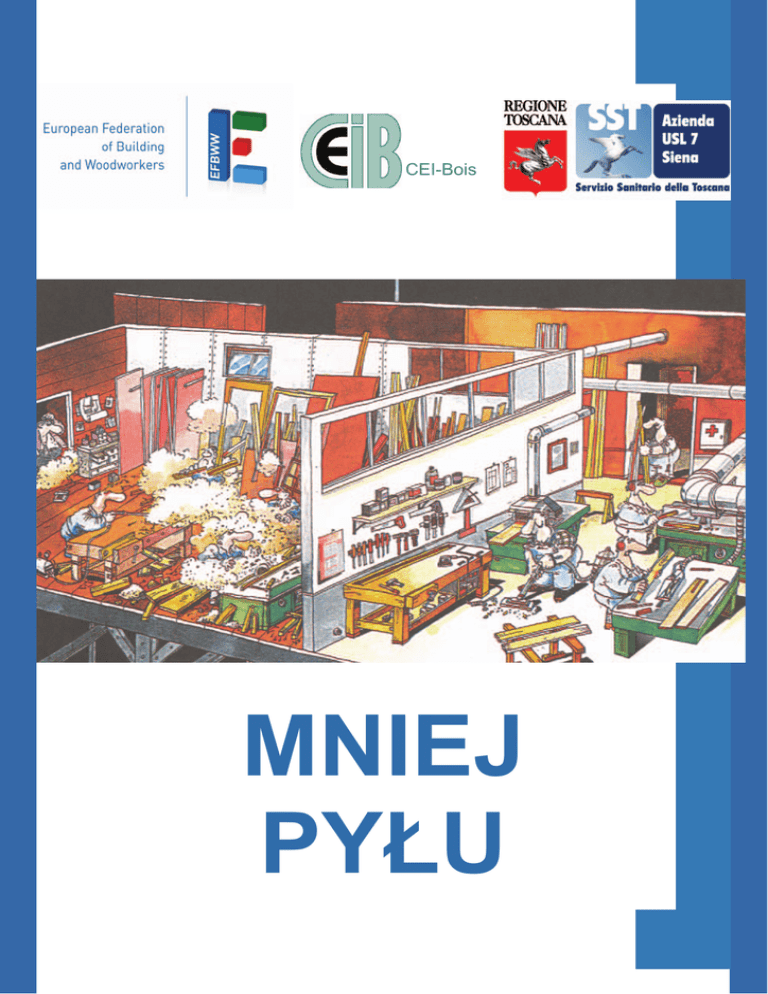 CEI-Bois MNIEJ PYŁU CEI-Bois Niniejszy raport został opracowany przez Europejską Federację Pracowników Budowlanych i Przemysłu Drzewnego, Konfederację Przemysłu Drzewnego i USL 7. Przy finansowym wsparciu Dyrekcji Generalnej ds. Zatrudnienia i Spraw Społecznych Komisji Europejskiej. Wszystkie prawa zastrzeżone. Żadna część niniejszej publikacji nie może być powielana, przechowywana w systemie archiwizacji lub przesyłana w jakiejkolwiek formie i jakąkolwiek metodą (elektroniczną, mechaniczną, fotokopii, nagrywania i innych) bez uprzedniej zgody wydawcy. Jakkolwiek dołożono starań by informacje niniejszej publikacji były rzetelne, wydawca i autorzy nie ponoszą odpowiedzialności za jakiekolwiek szkody lub inne zobowiązania wynikające dla jej użytkowników lub innych osób wynikające z treści niniejszej publikacji. Przedmowa Niniejsza broszura powstała w wyniku realizacji przez partnera społecznego projektu na rzecz europejskiego przemysłu drzewnego, który był prowadzony przez Europejską Federację Pracowników Budowlanych i Przemysłu Drzewnego (EFBWW) oraz Europejską Konfederację Przemysłu Drzewnego (CEI-Bois) we współpracy z A.usl7 Siena. Dany projekt stanowił kontynuację projektu „Mniej pyłu” przeprowadzonego w latach 2009 i 2010 przez organizacje będące partnerem społecznym akcji. Sukcesem wcześniejszego projektu była popularyzacja broszury „Mniej pyłu” (oryginalnie opublikowanej w pięciu językach: angielskim, francuskim, niemieckim, włoskim i hiszpańskim) oraz udana wymiana doświadczeń podczas dwóch seminariów zorganizowanych w ramach projektu. Po zakończeniu projektu otrzymaliśmy liczne zapytania dotyczące broszury (również z innych regionów świata), a organizacje niderlandzkich i flamandzkich partnerów społecznych zdecydowały się na stworzenie jej niderlandzkiej wersji. Ponadto utrzymywaliśmy te zagadnienia w zakresie tematycznym europejskiego dialogu społecznego. Szczególnie koncentrujemy się na kwestii lepszego projektowania urządzeń jako warunku niezbędnego do redukcji emisji u źródeł. Powyższe aspekty przesądziły o złożeniu nowego wniosku projektowego dotyczącego pyłu drzewnego. Komisja Europejska wsparła tę inicjatywę umożliwiając publikację nieco zmienionej broszury w kolejnych dodatkowych wersjach językowych (bułgarskiej, chorwackiej, litewskiej, polskiej, rumuńskiej oraz tureckiej) koncentrując się na krajach Europy Środkowej i Wschodniej oraz umożliwiając organizację czterech seminariów (na Litwie, w Polsce, Bułgarii i we Włoszech) w celu wsparcia poprawy praktycznych działań zapobiegawczych w tym regionie. EFBWW CEI-Bois A. Usl7 Siena Sam Hagglund Sekretarz Generalny Philip Buisseret Sekretarz Generalny Laura Benedetto Dyrektor Generalny 3 Spis treści Słowo wstępne ························································································ 3 Spis treści ································································································ 4 Wstęp ······································································································· 5 Przykłady dobrych praktyk ·································································· 12 1. Lista kontrolna dla pyłów ································································· 12 2. "Pył drzewny - dziękujemy!" ···························································· 13 3. Lepszy porządek - mniej pyłu drzewnego ······································· 15 4. Dwa rozwiązania redukujące ilość pyłu drzewnego w sektorze produkcji drewnianych ram do tapczanów i foteli ············· 18 5. Wyciąg dla frezarki dolnowrzecionowej ·········································· 23 6. Wyciąg dla czteroosiowej frezarki pionowej CNC4 ························· 24 7. Przykład wsparcia finansowego dla małych i bardzo małych przedsiębiorstw, umożliwiającego działania prewencyjne ·············· 25 8. Przykład francuskiego systemu realizowanego przez krajowe i regionalne kasy chorych w ramach partnerstwa z sektorami przemysłowymi ··············································································· 26 9. Podstawowe wymagania dla urządzeń filtrujących i wyciągów ······· 28 10. Szlifowanie siatkami firmy Mirka - rozwiązanie bezpyłowe ············· 29 Standaryzacja i prewencja ··································································· 31 Sprawozdanie z dwóch warsztatów ···················································· 40 1. Warsztat stacjonarnych maszyn i sprzętu CNC ······························ 40 2. Warsztat maszyn ręcznie sterowanych ··········································· 45 Wspólna deklaracja CEI-Bois i EFBWW oraz A. USL 7, Region Toskania, o warunkach pracy i pyle drzewnym ···················································································· 50 4 WSTĘP Drewno: wspaniały materiał Drewno jest naturalnym, uniwersalnym i doskonały materiałem. Gdyb