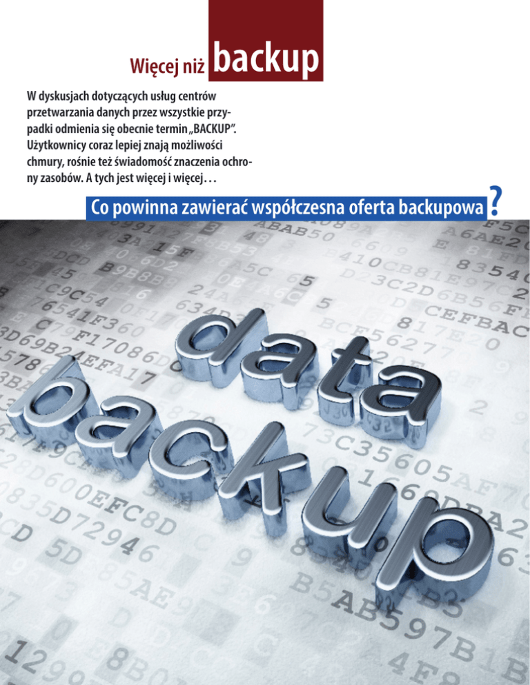 Więcej niż backup W dyskusjach dotyczących usług centrów przetwarzania danych przez wszystkie przypadki odmienia się obecnie termin „BACKUP”. Użytkownicy coraz lepiej znają możliwości chmury, rośnie też świadomość znaczenia ochrony zasobów. A tych jest więcej i więcej… Co powinna zawierać współczesna oferta backupowa DLP expert ? 4/2013 (7) | 42 Więcej niż backup W dużym skrócie: Backup to usługa polegająca na tworzeniu kopii zapasowych danych klienta – najlepiej na macierzach i dodatkowo na streamerach (taśmach). W efekcie użytkownik otrzymuje wraz z tym rozwiązaniem rodzaj gwarancji nienaruszalności swoich zasobów, bez względu na okoliczności. Z założenia lepiej oczywiście uniknąć konieczności przekonania się, jak taka polisa działa w praktyce. Jednak świadomość całej gamy zagrożeń, które nieustannie pojawiają się w odniesieniu do wirtualnych danych (zwłaszcza tych strategicznych), powoduje dążenie do zapewnienia im maksymalnej ochrony. Nic więc dziwnego, że właśnie backup zalicza się do podstawowych usług czy funkcjonalności nowoczesnego centrum przetwarzania danych. Z uwagi na ogromną ilość zbiorów informacji wytwarzanych w wirtualnej przestrzeni aktualne standardy bezpieczeństwa coraz wyraźniej muszą spełniać konieczność tworzenia dla nich kopii zapasowych oraz zapewnienia optymalnych warunków do sprawnego ich gromadzenia, przetwarzania i odtwarzania. Gdzie szukać profesjonalnego backupu i na co zwracać uwagę, podejmując decyzję o wdrożeniu tej usługi? Data Center Istotą skutecznego backupu jest oczywiście Data Center z całym niezbędnym zapleczem. W sytuacji, gdy bezpieczeństwo danych ma niejednokrotnie strategiczne znaczenie dla funkcjonowania współczesnej organizacji (firmy, korporacji czy urzędu), nie wystarczy zapewnić im odpowiedniej przestrzeni dyskowej. Serwerownia to podstawa, serce centrum przetwarzania danych, lecz na jej pełną sprawność oraz gotowość do odpowiadania bieżącym lub przyszłym wyzwaniom składa się jeszcze cała gama technologii i restrykcyjnych procedur. Wiele z nich odnosi się bezpośrednio do kwestii bezpieczeństwa. Potencjalni klienci Data Center oczekują przecież, że dostawcy usług będą dysponować zabezpieczeniami dużo bardziej zaawansowanymi niż te, które może zapewnić sobie we własnym zakresie np. przedsiębiorca spoza branży IT. To właśnie na dostawcy powinna ciążyć cała odpowiedzialność za przechowywane zasoby. Musi być więc on w pełni przystosowany do podjęcia się tak ważnego zadania. Dlatego w Polsce coraz poważniej podchodzi się do tego, gdzie i jak gromadzi się dane, a co za tym idzie – do postrzegania chmury obliczeniowej jako profesjonalnego i kompleksowego zespołu narzędzi IT. Exea Data Center w Toruniu zainaugurowało swoją działalność we wrześniu 2013 r. Przejawem nowego podejścia, nowego etapu przetwarzania w chmurze Exea Data Center w Toruniu 43 | 4/2013 (7) DLP expert Więcej niż backup jest fakt, że zostało ono od podstaw zaprojektowane i zbudowane typo- wielu poziomach – w tym również przywracanie systemu informatyczne- wo do świadczenia usług w modelu Cloud Computing. Dzięki temu obiekt go po awarii lub katastrofie. Podczas wybierania rozwiązań backupowych wraz z infrastrukturą jest przygotowany zarówno na codzienne, standar- warto przyjrzeć się specyfice ich działania. Umożliwia to poznanie wszyst- dowe działania związane z obsługą i ochroną ogromnej liczby wirtualnych kich korzyści płynących z tworzenia kopii zapasowych. danych, jak i na reagowanie na ekstremalne sytuacje. W praktyce oznacza to m.in. wielopoziomowe spełnianie wymogów związanych z bezpieczeń- W przypadku platformy Cloud Backup oraz Disaster Recovery Site rozwią- stwem danych. Do widocznych przykładów spełniania tych wymogów zanie składa się z dwóch głównych komponentów: lokalnego instalowa- zaliczyć można: lokalizację i konstrukcję budynku, korzystanie z niezależ- nego w sieci LAN klienta oraz głównego, który jest instalowany w odrębnej nych dostawców łączy internetowych, zasilanie z 2 oddzielnych trafostacji, lokalizacji - Exea Data Center. Dzięki takiej budowie backup danych klienta trójfazowy system UPS, agregat prądotwórczy, fizyczne firewalle, logiczny przechowywany jest zawsze w co najmniej dwóch lokalizacjach (lokalnie firewall dla każdego klienta, system prewencji intruzów, połączenie z ser- oraz w centrum przetwarzania danych). werem wirtualnym przy pomocy tunelu VPN, systemy wykrywania oraz sygnalizacji dymu i ognia, całodobowy monitoring i ochrona fizyczna, czy Taki sejf lokalny wykonuje zadania backupu w środowisku klienta, przecho- wreszcie cykliczny backup oraz dodatkowy backup na streamerach (ta- wuje do szybkich odtworzeń produkcyjnych zaszyfrowane i zdedupliko- śmach). wane (o zredukowanej objętości) na poziomie plików dane i transportuje je do sejfu głównego. Ten stanowi natomiast zdeduplikowane globalnie Jednocześnie w przypadku profesjonalnego centrum przetwarzania da- repozytorium zakodowanych kluczem użytkownika bloków zasobów, po- nych bardzo ważne jest, by oferowało ono dostęp do nieograniczonych zwalające przywrócić dane źródłowe z dowolnie usytuowanego fizycznie mocy obliczeniowych oraz szerokiego zakresu aktualnych usług IT. To miejsca w przypadku utraty całej lokalizacji klienta. Jednocześnie dodat- potencjał infrastruktury Data Center nadaje backupowi charakter wielo- kowa opcja zapasowej lokalizacji (w geograficznie oddzielonym ośrodku) wymiarowego rozwiązania, w ramach którego wynajmuje się fragment w ramach Disaster Recovery Site umożliwia natychmiastowe odtworzenie środowiska informatycznego wraz z oprogramowaniem i użytkuje go jak pełnej infrastruktury w razie wystąpienia awarii ośrodka podstawowego. swoje własne, zachowując wyłączność dostępu do niego. Co więcej, obecność „na mie