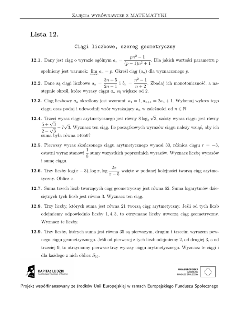 12.1. Dany jest ciąg o wyrazie ogólnym an =