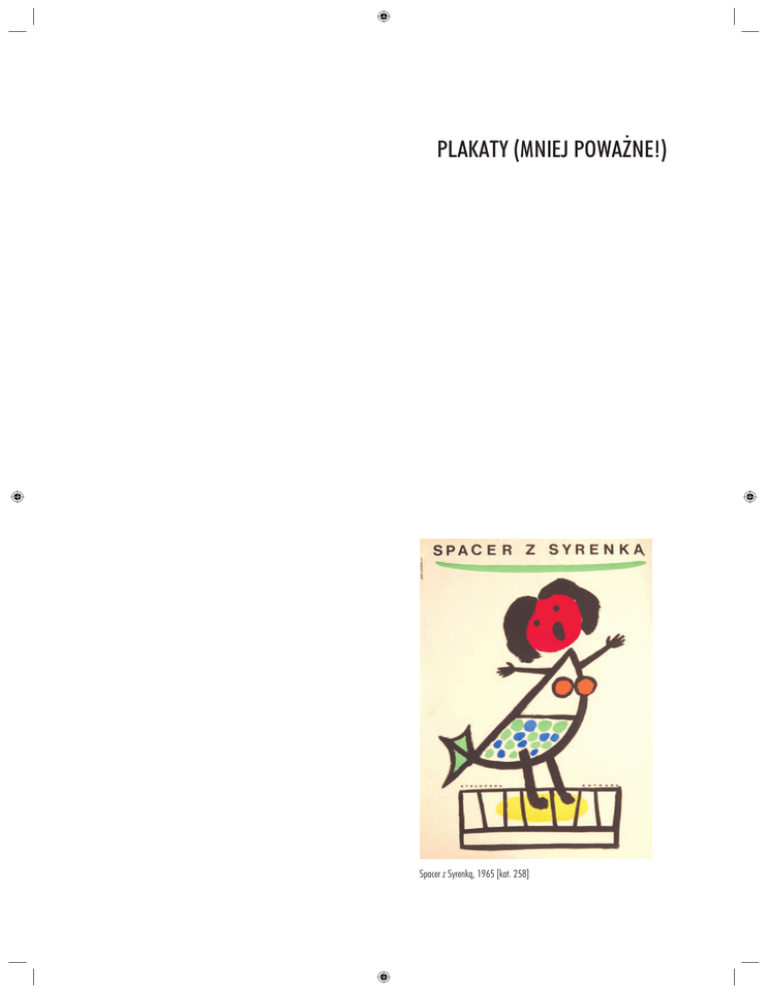 PLAKATY (MNIEJ POWAŻNE!) Spacer z Syrenką, 1965 [kat. 258] Joseph Andrews, film angielski 1978 [kat. 255] 90 Orfeusz w piekle, film prod. NRD 1974 [kat. 251] Teatr Syrena [projekt razem z Zuzanną Lipińską] 1975 [kat. 269] Bubu z Montparnasse, film rumuński 1973 [kat. 248] 91 Nie oszukuj, kochanie, film prod. NRD 1974 [kat. 252] Emil i detektywi, Teatr Syrena w Warszawie 1966 [kat. 259] Wodewil warszawski, Teatr Syrena w Warszawie 1973 [kat. 266] Warszawska Syrena, film polski 1956 [kat. 241] 92 Kabaret Dudek, 1967 [kat.262] 93 Plakaty dla Muzeum Karykatury Co kraj to obyczaj. Wystawa pokonkursowa 1986 [kat. 277] 94 Warszawa w karykaturze. Od Warsa i Sawy do Trasy Łazienkowskiej 1979 [kat. 272] Twarze i buźki. Współczesna polska karykatura portretowa 1985 [kat. 274] Grzechy nasze. Siedem grzechów głównych i innych 1984 [kat. 273] „Szpilki” 50 lat. 1935-1985 1985 [kat. 275] 95 Grafik, l. 80 XX w. [kat. 89] 96