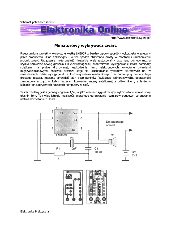 6FKHPDWSREUDQR]VHUZLVX KWWSZZZHOHNWURQLNDJHU\SO 0LQLDWXURZ\Z\NU\ZDF]]ZDUü 3U]HGVWDZLRQ\SURMHNWZ\NRU]\VWXMHNRVWN /0ZEDUG]RW\SRZ\VSRVyE Z\NRU]\VWDQR]DOHFDQ\ SU]H] SURGXFHQWD XNáDG DSOLNDF\MQ\ L Z WHQ VSRVyE RWU]\PDQR SURVW\ Z PRQWD*X L XUXFKRPLHQLX SUyEQLN ]ZDUü 8U]G]HQLH PR*H ]QDOH(ü QLH]Z\NOH ZLHOH ]DVWRVRZD SU]\ MHJR SRPRF\ PR*QD V]\ENR VSUDZG]Lü FHZN JáRQLND OXE HOHNWURPDJQHVX VNRQWURORZDü Z\VW SRZDQLH ]ZDUü SRPL G]\ FLH*NDPL QD Sá\WFH GUXNRZDQHM XV]NRG]HQLD ODPS HOHNWURQRZ\FK Z\ZRáDQH ]ZDUFLDPL PL G]\HOHNWURGRZ\PL ]QDF]QLH SURVWV]H VWDMH VL XUXFKDPLDQLH V\VWHPyZ DODUPRZ\FK QS Z VDPRFKRGDFK JG]LH Z\VW SXMH GX*D LORü ZáF]QLNyZ PHFKDQLF]Q\FK : GRPX SU]\ SRPRF\ WHJR SURVWHJR WHVWHUD PR*HP\ VSUDZG]Lü VWDQ EH]SLHF]QLNyZ ]ZáDV]F]D MHGQRUD]RZ\FK SRSUDZQRü ]DPRQWRZDQLD ]áF] Z NDEOX áF]F\P NRQZHUWHU DQWHQ\ VDWHOLWDUQHM ] RGELRUQLNLHP D WDN*H Z NDEODFKNRQFHQWU\F]Q\FKáF]F\FKNRPSXWHU\ZVLHü 7HVWHU]DVLODQ\MHVW]MHGQHJRRJQLZD9DMDNRHOHPHQWV\JQDOL]DF\MQ\Z\NRU]\VWDQRPLQLDWXURZ\ JáRQLN RP 7DN ZL F LVWQLHMH PR*OLZRü ]QDF]QHJR RJUDQLF]HQLD UR]PLDUyZ REXGRZ\ FR ]QDF]QLH XáDWZLDNRU]\VWDQLH]XNáDGX (OHNWURQLND3UDNW\F]QD