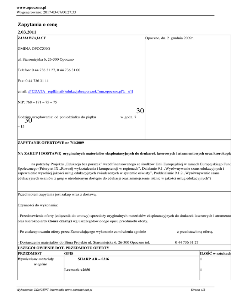 ZAPYTANIE OFERTOWE nr 7/1/2009