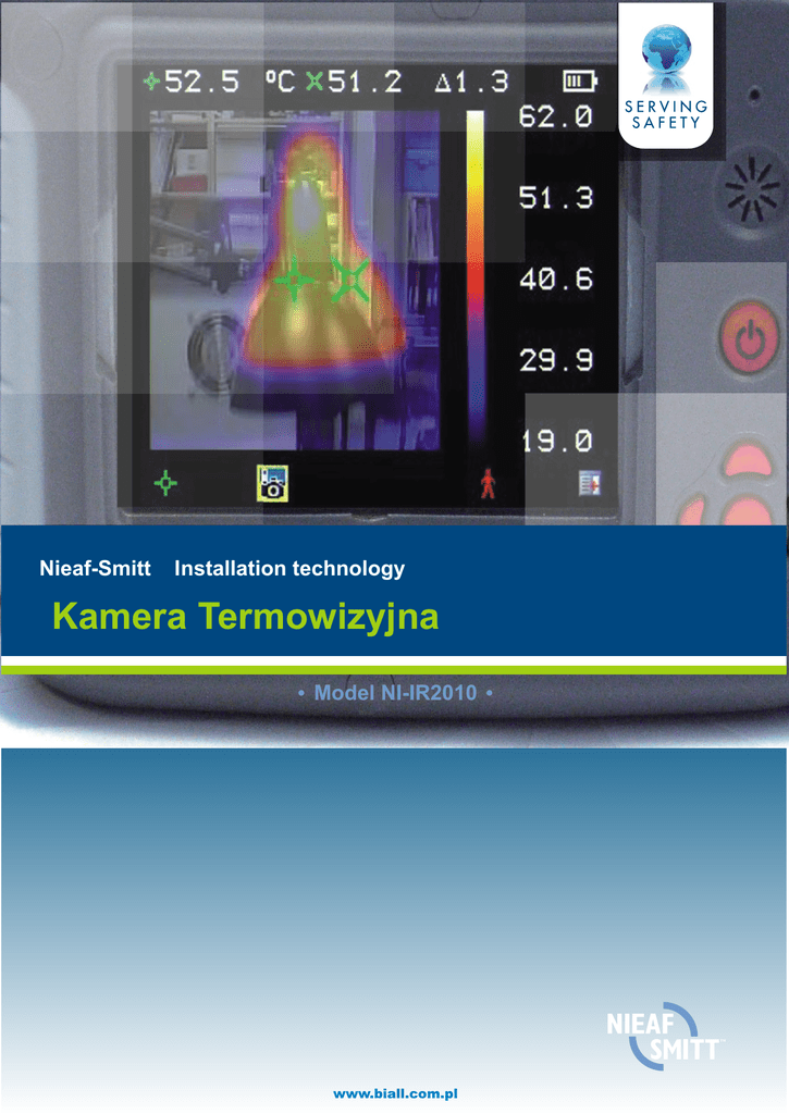 Nieaf-Smitt Installation technology Kamera Termowizyjna • Model NI-IR2010 • www.biall.com.pl Kamera Termowizyjna NI-IR2010 Charakterystyka ŁĄCZENIE OBRAZU Pozwoli Ci zobaczyć rzeczywisty albo termiczny obraz twojego sprzętu, albo zmiksuje oba obrazy. Dzięki kombinacji rzeczywistego i termicznego obrazu użytkownik ma możliwość otrzymać wyrazisty obraz sprzętu i może z łatwością wychwycić ewentualne problemy/błędy/usterki. ŚLEDZENIE CIEPŁA/ZIMNA Włączenie funkcji "śledzenia" spowoduje uaktywnienie dwóch kursorów, które odnajdą/wskażą najcieplejszy i najzimniejszy punkt na obrazie. Funkcja ta jest przydatna szczególnie do szybkiej detekcji usterek, co sprawi, że nie będziesz musiał snuć domysłów. DŹWIĘKOWE I WIZUALNE ALARMY Funkcja programowalnych alarmów dźwiękowych i wizualnych pozwala użytkownikowi ustawić swoje własne progi temperatur o przekroczeniu których urządzenie poinformuje automatycznie. Funkcja ta współpracuje w pełni z trybami łączonych obrazów oraz śledzeniem ciepła/zimna. Funkcja progów alarmowych jest szczególnie pomocna gdy użytkownik doskonale zna parametry pracy badanego obiektu i wie jakie wartości temperatury poszczególnych elementów są już krytyczne dla poprawnego jego funkcjonowania. ADNOTACJE GŁOSOWE DODAWANE DO ZAPISANYCH OBRAZÓW Kamera może przechowywać do 1000 obrazów na karcie SD. Użytkownicy chcący dokonywać pomiarów dużych objętościowo urządzeń mają możliwość dodawania "zakładek" głosowych do każdego z uchwyconych obrazów. Odtwarzanie nagrań głosowych jest możliwe za pomocą kamery lub komputera. Nagrania głosowe sprawdzają się szczególnie przy identyfikowaniu obrazów w późniejszym czasie, albo podczas przygotowywania raportów za pomocą dodanego do kamery oprogramowania PC. WYTRZYMAŁA I ŁATWA W UŻYCIA Obudowa urządzenia jest wykonana z bardzo wytrzymałego tworzywa, które zostało pokryte "miękkim" plastikiem. Kamera dostarczana jest w bardzo trwałej "walizce", ale całość pozostaje lekka i łatwa w przenoszeniu. Urządzenie wyposażone jest w wyjmowaną rączkę. Akumulator wystarcza na 6 godzin nieprzerwanej pracy. 2 www.biall.com.pl Kamera Termowizyjna Funkcje Wskaźnik laserowy Latarka LED Kamera światła widzialnego · Obiektyw IR Spust Demontowalna rączka/uczwyt Wskaźnik baterii Spust Głośnik Przyciski nawigacji Kursor wyświetlacza Klawisze skrótów Wyposażenie - Karta pamięci Micro SD - Futerał - Instrukcja obsługi - Oprogramowanie Pomiar w czasie rzeczywistym Obraz rzeczywisty/obraz IR/obraz mieszany (100%, 75%, 50%, 25%, 0%) Intuicyjna obsługa urządzenia Pomiary wielokrotne Podgląd zapisanych obrazów Graficzny wskaźnik stanu naładowania baterii Niska waga urządzenia Wskaźnik laserowy Automatyczny lokalizator punktów najcieplejszych i najzimniejszych Kilka trybów języka menu Pomiar dzięki soczewce termicznej Zintegrowana latarka LED Dane techniczne Kamera NI-IR2010 umożliwia wyświetlanie obrazu rzeczywistego oraz w pełnej podczerwieni. Obraz termiczny może zostać nałożony na obraz rzeczywisty w różnym stopniu przezroczystości. 100% termiczny Pomiary Zakres temp. Optymalna temperatura pracy Pole pomiaru (FOV) Zakres widma Zakres ogniskowej Detektor Czułość Dokładność Odświeżanie obrazu Pomiar promieniowania Pamięć pomiarów Pojemność pamięci Zasilanie Bateria Dane fizyczne Waga REGIONALNE BIURO HANDLOWE 03-450 WARSZAWA, Ratuszowa 11 pok.68 tel.: 022 211-13-03; kom. +48 505 107 957 e-mail: [email protected] Opis Parametr Regulacja obazu 100% rzeczywisty · · · · · · · · · · · · Układ “miękkiego” startu Wybór zakresu i poziomu kontroli Auto regulacja zakresu 4 zaprogramowane progi przybliżenia obrazu widzialnego i termicznego Płynna manualna regulacja przybliżenia obrazu widzialnego i termicznego Pomiar uruchamiany spustem Odczyt temperatury w °C lub °F Wybór tabel emisyjności Wybór odbitej temperatury 2 ruchome punkty śledzenia mierzonej temperatury Analiza powierzchni - 3 zaprogramowane tryby Profile X-Y Izotermy Adnotacje tekstowe Adnotacje głosowe Obrazy zapisywane z datą i godziną Graficzny i dźwiękowy alarm Właściwości Mikrofon - Kamera NI-IR2010 - Demontowalny rączka/uchwyt - Ładowalna bateria - Zasilacz AC · · · · -10°C ~ +350°C 23°C 20° x 20° 8mm ~ 12mm 0,5m ~ nieskończoność 47 x 47 pix Ł0,3°C @ 30°C ±2°C lub 2%°C 8Hz Dwa ruchome punkty pomiaru Do 1000 obrazów na karcie MicroSD Ładowalna litowo jonowa do 6h pracy ciągłej 0,70kg SIEDZIBA GŁÓWNA 80-174 GDAŃSK, Otomin, Słoneczna 43 tel.: 058 322-11-91,92; fax: 058 322-11-93 e-mail: [email protected] www.biall.com.pl