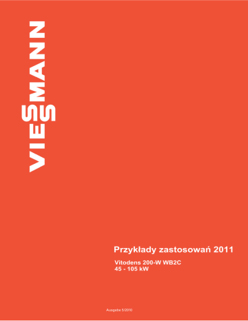 Kotły grzewcze wiszące 45 do 105 kW 4.1 Przegląd przykładów zastosowań Obieg grzewczy bez mieszacza, ze sprzęgłem hydraulicznym Patrz strona 96 Trzy lub więcej obwodów grzewczych z mieszaczem i sprzęgłem hydraulicznym Patrz strona 121 ID: 4605139_1103_02 Obieg grzewczy z mieszaczem, ze sprzęgłem hydraulicznym Patrz strona 100 ID: 4605143_1103_02 Trzy lub więcej obwodów grzewczych z mieszaczem i sprzęgłem hydraulicznym Patrz strona 127 ID: 4605140_1103_02 Obieg grzewczy z mieszaczem, bez sprzęgła hydraulicznego, z rozdzieleniem systemowym Patrz strona 105 ID: 4605144_1103_02 4 ID: 4605141_1103_02 Obieg grzewczy bez mieszacza lub dwa obiegi grzewcze z mieszaczem i ze sprzęgłem hydraulicznym Patrz strona 110 5824 470 PL ID: 4605142_1103_02 Instalacja wielokotłowa Patrz strona 116 ID: 4605016_1103_04 Przykłady instalacji VIESMANN 95 Kotły grzewcze wiszące 45 do 105 kW (ciąg dalszy) 4.2 Obieg grzewczy bez mieszacza, ze sprzęgłem hydraulicznym Elementy podstawowe ■ Gazowy kocioł kondensacyjny 1 Vitodens 200-W, 45 do 105 kW ■ Vitotronic 100 (regulator stałotemperaturowy) lub Vitotronic 200 (regulator pogodowy) ■ Zestaw przyłączeniowy obiegu grzewczego iP z pompą obiegową ■ Sprzęgło hydrauliczne tP ■ Podgrzew wody użytkowej: – Pojemnościowy podgrzewacz wody qP – Zestaw przyłączeniowy pojemnościowego podgrzewacza wody iQ ID: 4605139_1103_02 Zakres zastosowania Instalacja grzewcza z nieregulowanym obiegiem grzewczym grzejników eP: ■ ze sprzęgłem hydraulicznym tP (patrz „wymogi”) Podgrzew wody użytkowej przez kocioł Vitodens Wymogi Jeżeli całkowity przepływ objętościowy wszystkich obiegów grzewczych jest większy niż maks. możliwy przepływ objętościowy kotła grzewczego (patrz tabela), konieczne jest zastosowanie sprzęgła hydraulicznego tP. Kocioł grzewczy Vitodens 200-W, 17-45 kW Vitodens 200-W, 17-60 kW Vitodens 200-W, 30-80 kW Vitodens 200-W, 30-105 kW Maks. przepływ objętościowy l/h 3500 3500 5700 5700 Jeżeli nie można zapewnić minimalnych przepływów objętościowych podanych w poniższej tabeli, zalecamy użycie sprzęgła hydraulicznego tP. Kocioł grzewczy Vitodens 200-W, 17-45 kW Vitodens 200-W, 17-60 kW Vitodens 200-W, 30-80 kW Vitodens 200-W, 30-105 kW Eksploatacja grzewcza Regulator 2 kotła grzewczego 1 reguluje w sposób zależny od pogody lub temperatury pomieszczenia temperaturę wody w kotle (= temperatura na zasilaniu obiegu grzewczego eP). Pompa obiegu grzewczego A1 eQ instalacji ogrzewania podłogowego eP sterowana jest przez zestaw uzupełniający AM1 6. Podgrzew wody użytkowej przez kocioł grzewczy Jeżeli wartość ustawionej na regulatorze 2 temperatury wody użytkowej spadnie poniżej wymaganego poziomu, pompa obiegowa podgrzewacza qZ zostanie włączona. Podgrzew wody użytkowej w obrębie ustawionych na regulatorze 2 czasów z zastosowaniem lub bez zastosowania układu preferencji. Pompa cyrkulacyjna ZP qW jest podłączana, w zależności od wyposażenia instalacji, do wewnętrznego zestawu uzupełniającego H1 4 lub H2 5. Min. przepływ objętościowy l/h 450 450 1300 1300 5824 470 PL 4 Opis działania Pompa obiegowa tW zasila obieg grzewczy eP lub obieg kotła aż do sprzęgła hydraulicznego. Pojemnościowy pogrzewacz wody qP zasilany jest pompą obiegową qZ. W przypadku instalacji ze sprzęgłem hydraulicznym dostarczona przez inwestora pompa obiegu grzewczego A1 eQ zasila obieg grzewczy eP. 96 VIESMANN Przykłady instalacji Kotły grzewcze wiszące 45 do 105 kW (ciąg dalszy) Schemat instalacji hydraulicznej ID: 4605139_1103_02 30 31 --6/A1-WW 51 -2/X33 --2/X3-- 50 1 11 --2/5-- 16 -6/A2- 4 6 4 5 --230V---28---96---20-- 2 -KM-Bus- 80 -KM-Bus- 81 --40---A2---A1-- 10 --5---X3---X3--KM-Bus- KW 52 -2/20- 7 --40-- 12 --x/x-- Wskazówka: Niniejszy schemat jest przykładem podstawowej instalacji bez urządzeń odcinających i zabezpieczających. Nie zastępuje on fachowego projektu w miejscu montażu. Wskazówka W przypadku przyłącza elektrycznego x/x: Pompa cyrkulacyjna ZP qW jest podłączana, w zależności od wyposażenia instalacji, do wewnętrznego zestawu uzupełniającego H1 4 lub H2 5. Wymagane urządzenia Nr katalog. patrz cennik firmy Viessmann 7452 092 7179 057 7179 144 5824 470 PL ID: 4605139_1103_02 Poz. Oznaczenie Kocioł grzewczy 1 wyposażony w Regulator stałotemperaturowy 2 lub Regulator pogodowy Czujnik temperatury zewnętrznej ATS (tylko w przypadku eksploatacji sterowanej pogodowo) 3 Instalacja bez cyrkulacji: – Zestaw uzupełniający AM1 6 Instalacja z cyrkulacją dodatkowo: – Wewnętrzny zestaw uzupełniający H1 4 lub – Wewnętrzny zestaw uzupełniający H2 5 Przykłady instalacji VIESMANN 97 Kotły grzewcze wiszące 45 do 105 kW (ciąg dalszy) ID: 4605139_1103_02 Poz. Oznaczenie Regulator sterowany temperaturą pomieszczenia/zdalne sterowanie Eksploatacja stałotemperaturowa Vitotrol 100, typ UTA 8 lub Vitotrol 100, typ UTDB 9 lub Vitotrol 100, typ UTDB-RF Podgrzew wody użytkowej przez kocioł grzewczy 1 Pojemnościowy podgrzewacz wody qP Czujnik temperatury wody w podgrzewaczu STS qQ qW qZ eP eQ tP tQ tW Pompa cyrkulacyjna wody użytkowej ZP Pompa obiegowa podgrzewacza UPSB – 45 i 60 kW – 80 i 105 kW Obieg grzewczy bez mieszacza Pompa obiegu grzewczego Sprzęgło hydrauliczne – 45 i 60 kW – 80 i 105 kW Czujnik temperatury wody na zasilaniu sprzęgła hydraulicznego – 45 i 60 kW – 80 i 105 kW Pompa obiegowa 4 7 zP zQ zW zE zR zT zZ zU zI uP 7170 149 Z007 691 Z007 692 patrz cennik firmy Viessmann Zakres dostawy zestawu przyłączeniowego iQ patrz cennik Vitoset Zakres dostawy zestawu przyłączeniowego iQ Inwestor Inwestor patrz cennik Vitoset Z007 743 7179 488 Zakres dostawy sprzęgła hydraulicznego tP Zakres dostawy zestawu przyłączeniowego obiegu grzewczego iP 7452 091 Inwestor Inwestor Inwestor Inwestor Inwestor Z008 341 Z008 342 7450 563 7415 028 patrz cennik firmy Viessmann patrz cennik firmy Viessmann patrz cennik firmy Viessmann