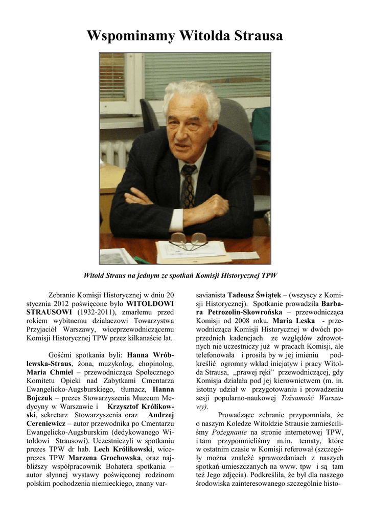 Wspominamy Witolda Strausa - Towarzystwo Przyjaciół Warszawy
