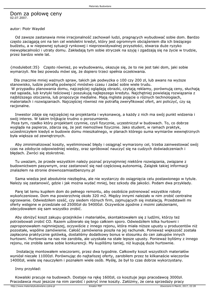 {modulebot:35} Często również, po wybudowaniu, okazuje się, że to nie jest taki dom, jaki sobie