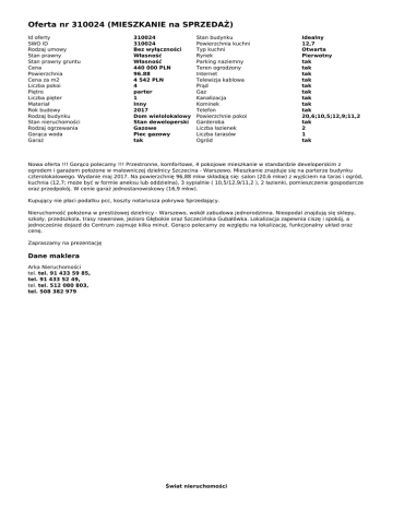 Oferta nr 310024 (MIESZKANIE na SPRZEDAŻ)