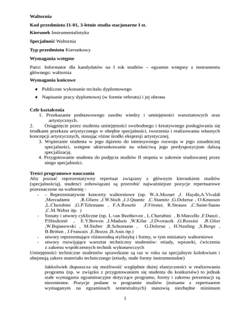 Waltornia Kod przedmiotu I1-01, 3-letnie studia stacjonarne I st